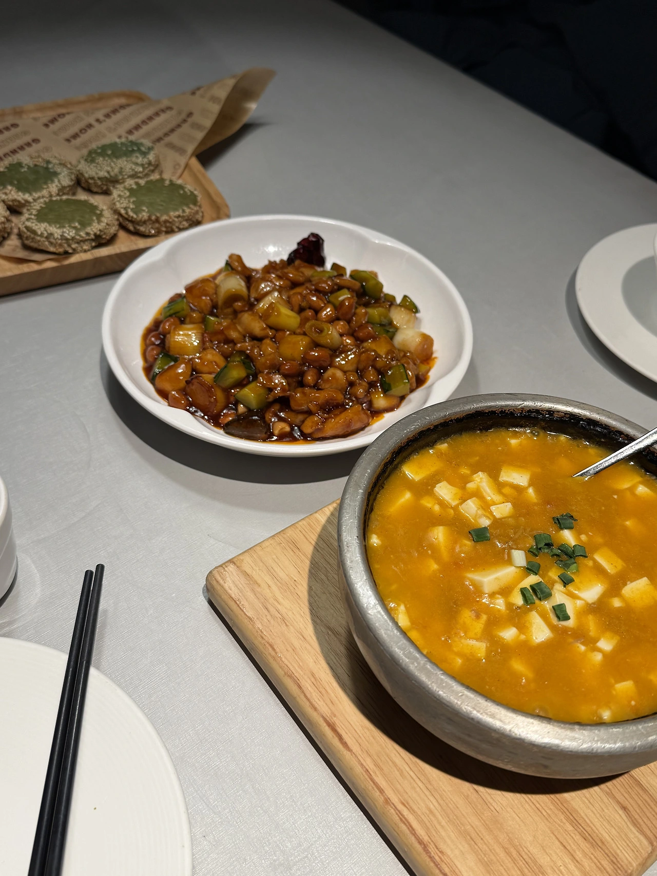 궁바우지딩 전에는 宫保虾球(gōngbǎoxiāqiú, 궁바우지딩이랑 비슷한데 닭고기가 아닌 새우튀김으로 만든다), 小炒肉(xiǎochǎoròu, 돼지고기와 매운 고추를 볶은 음식), 外婆小牛肉(wàipóxiǎoniúròu, 소고기를 큐브 모양으로 맛 좋게 볶아낸 음식)를 좋아해서 많이 먹었다. 적당히 신메뉴도 나오고, 그 시기에 유행하는 메뉴도 팔고, 웃기는(긍정적으로) 식당이다. 아마도 와이포지아는 나에게 진짜 외할머니 댁 같은 편안한 식당이 된 것 같다. 어쩌면 항저우를 떠나도 가끔 생각날 것 같기도?
