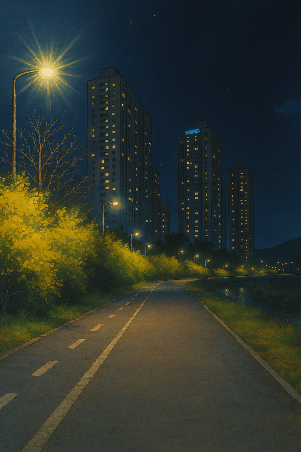 대답 대신 바람이 스쳐 지나간다. 가로등 불빛 아래, 잔잔히 흔들리는 나뭇가지들이 조용한 공감을 보내주는 것만 같다.