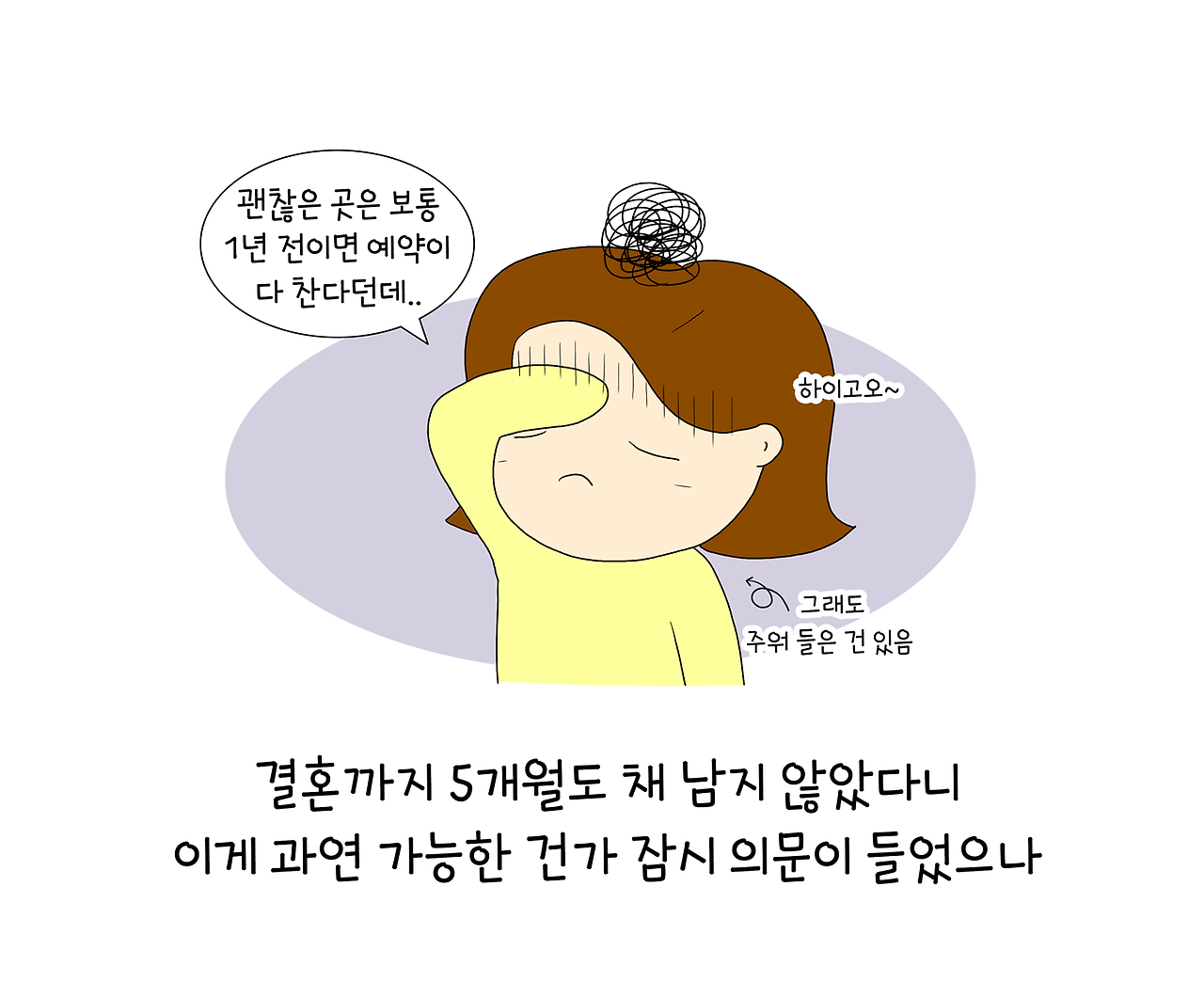 결혼 준비 초반부터 너무 기운을 빼거나 스트레스 받지 않았으면 좋겠다.