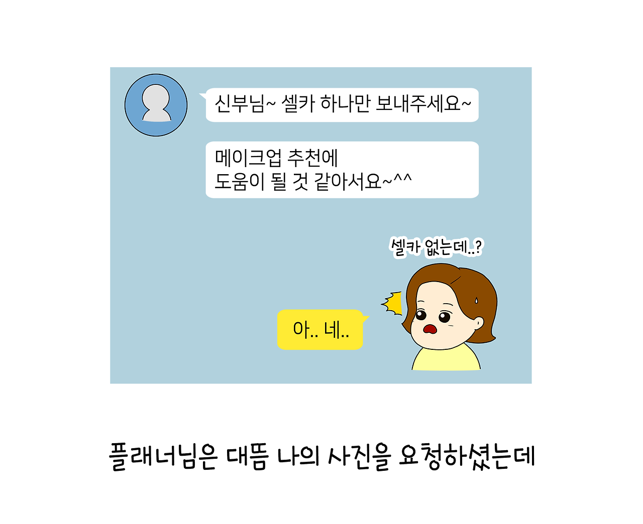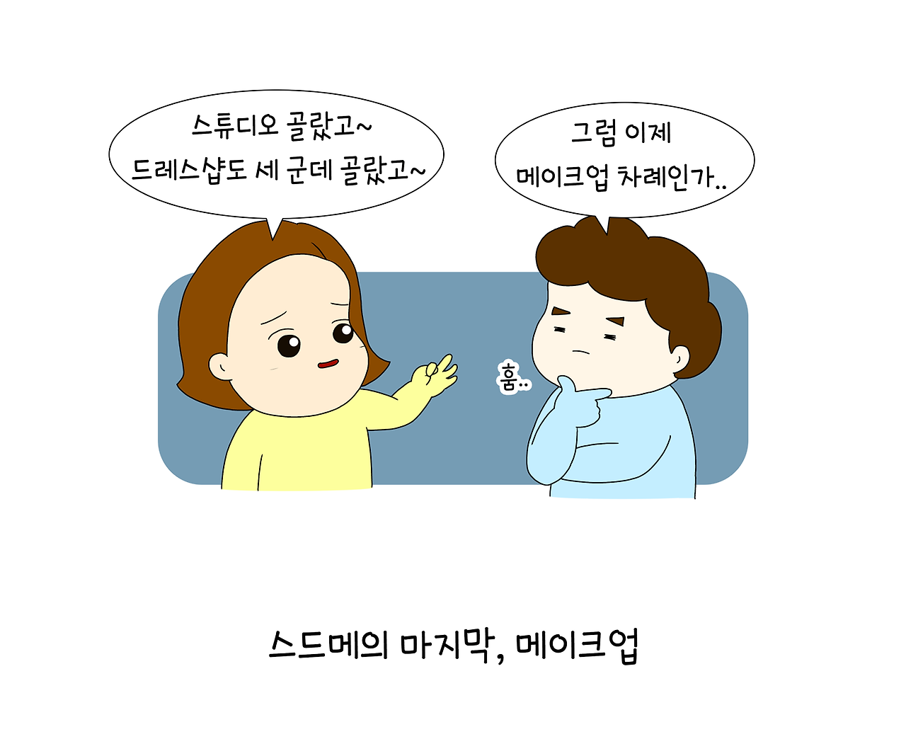 평소에 꾸미기에 영 소질이 없는 편이라 스드메에서 굉장히 고생을 했다.