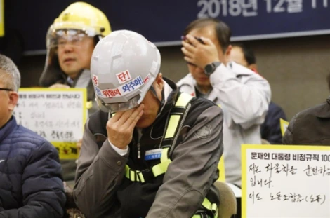 일하다 죽을 수도 있다면 그렇게 죽음으로 내모는 것이 외주화라면 우리의 시선은 어디로 향해야 할까. 떨궈진 노동자의 시선을 차마 마주할 수 없다. [출처 : 오마이뉴스]
