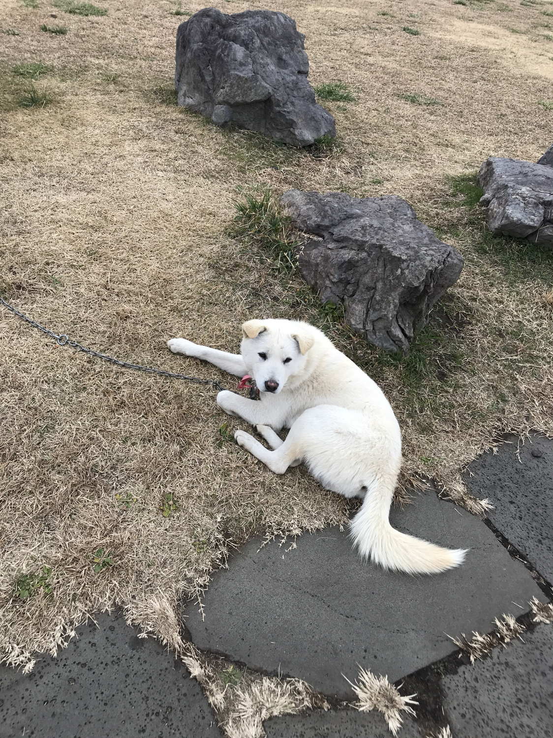 송악산 전망대까지 가면 마라도와 가파도를 볼 수 있다. 이번엔 날도 춥고 시간도 별로 없어서 10분정도 산책하다 왔다. 올라가는 길에 말잘듣고 순한 댕댕이가 한마리 있다.
