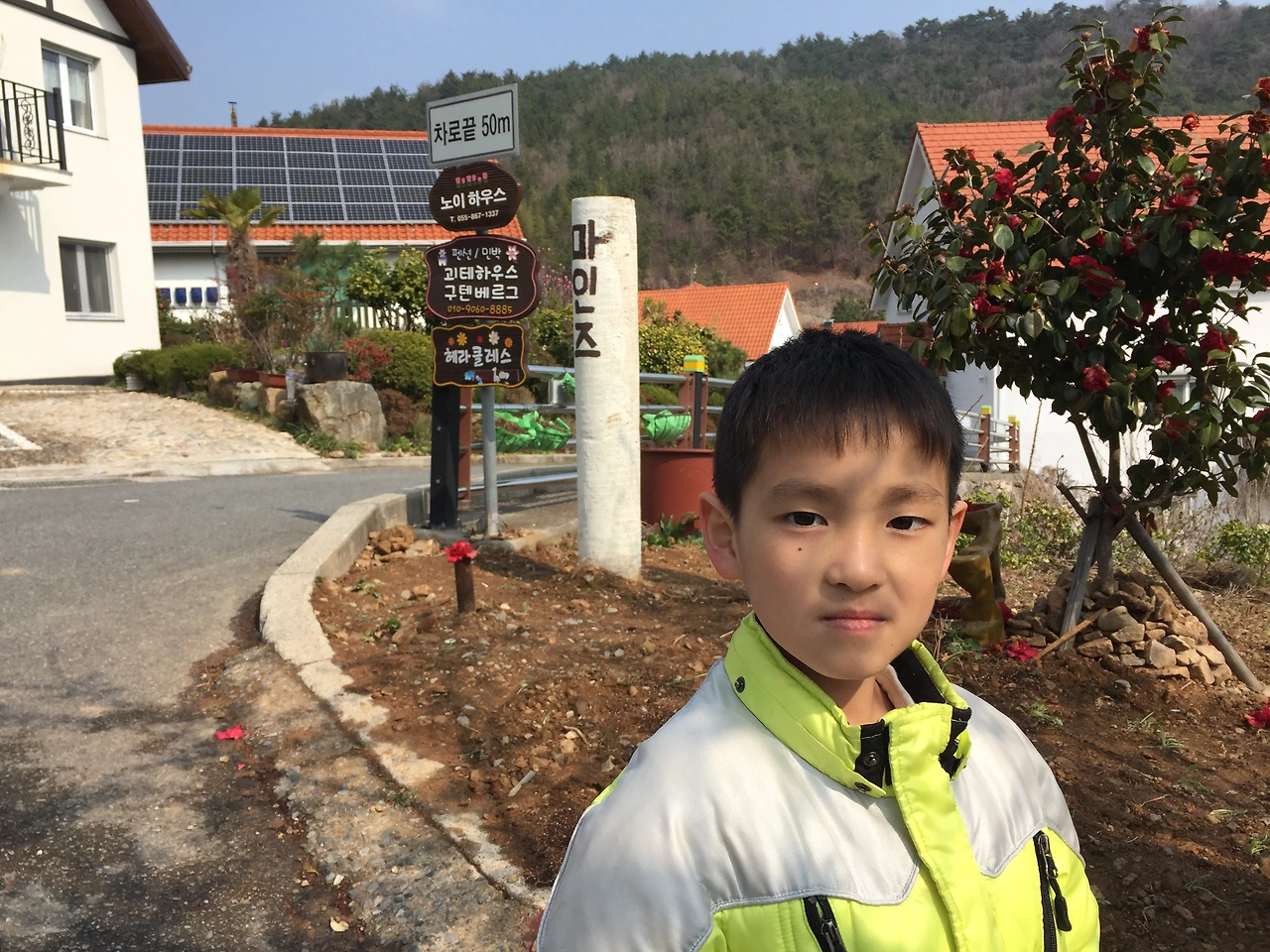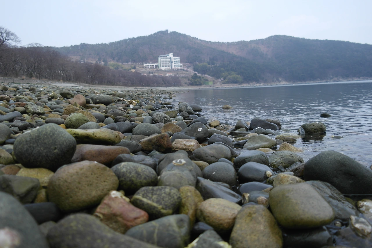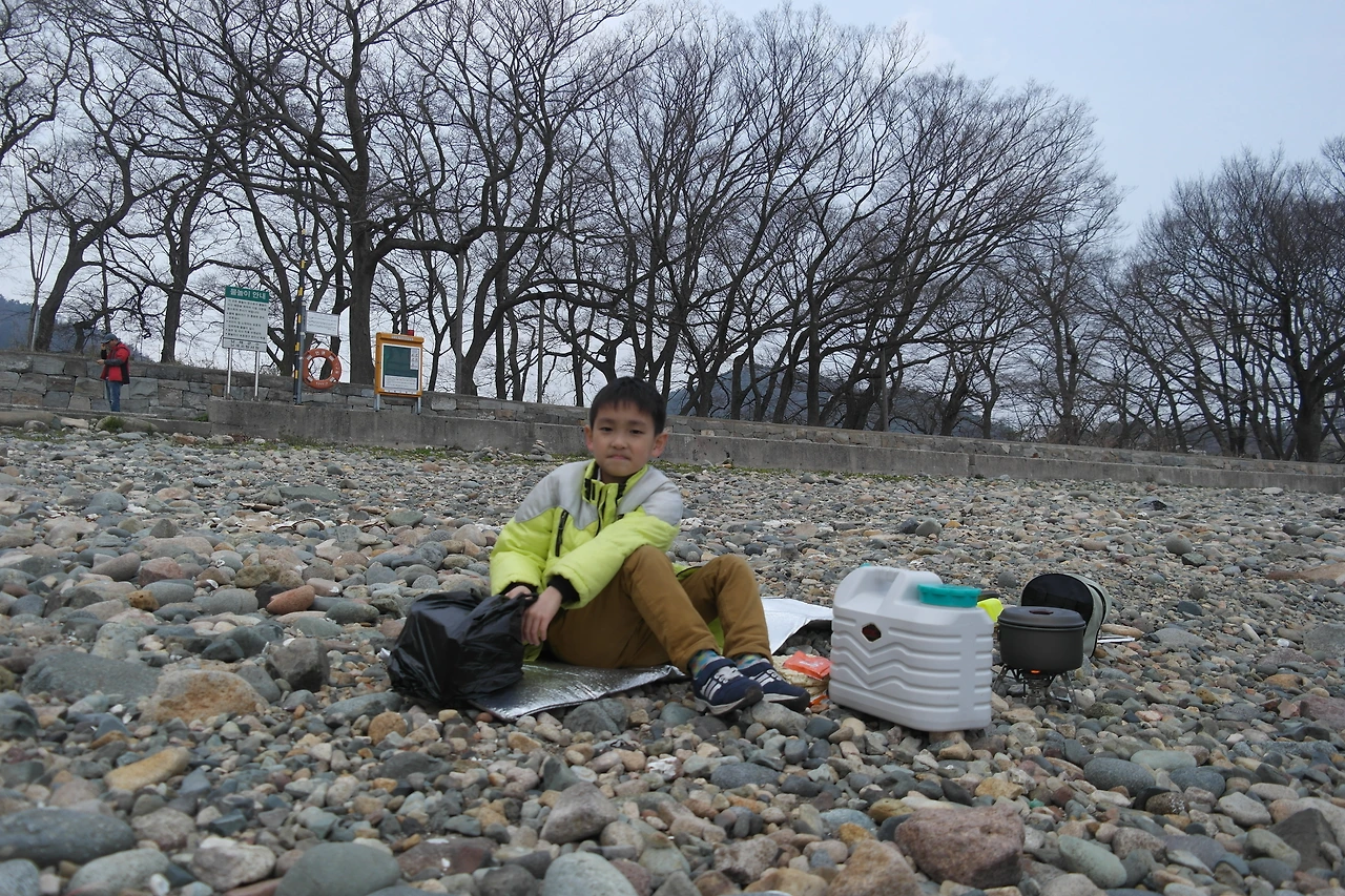 라면을 먹은 후 깨끗이 정리하고 아이 손을 잡고 몽돌 해변을 거닐어 봅니다.
