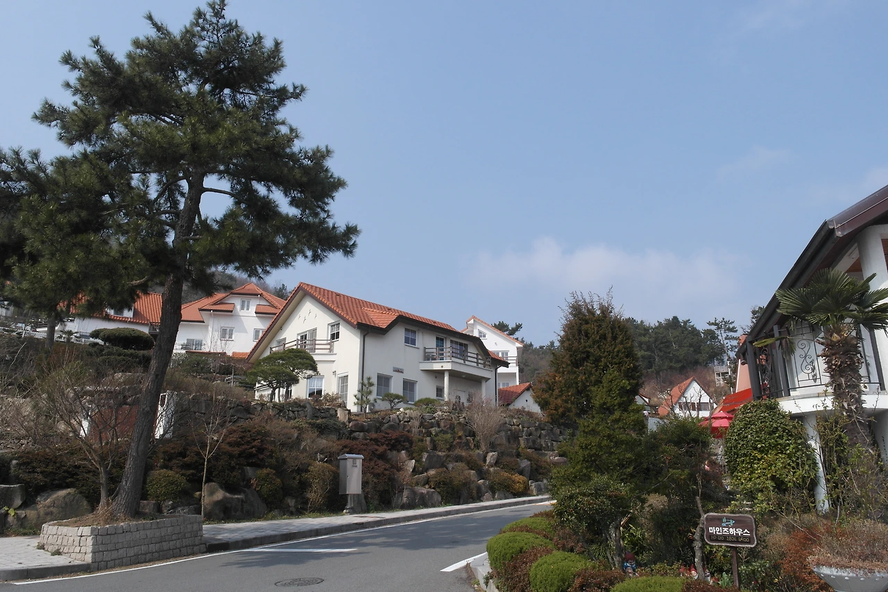 물건마을 쪽에서 주차장 방향으로 올려다본 본 독일마을의 풍경입니다.