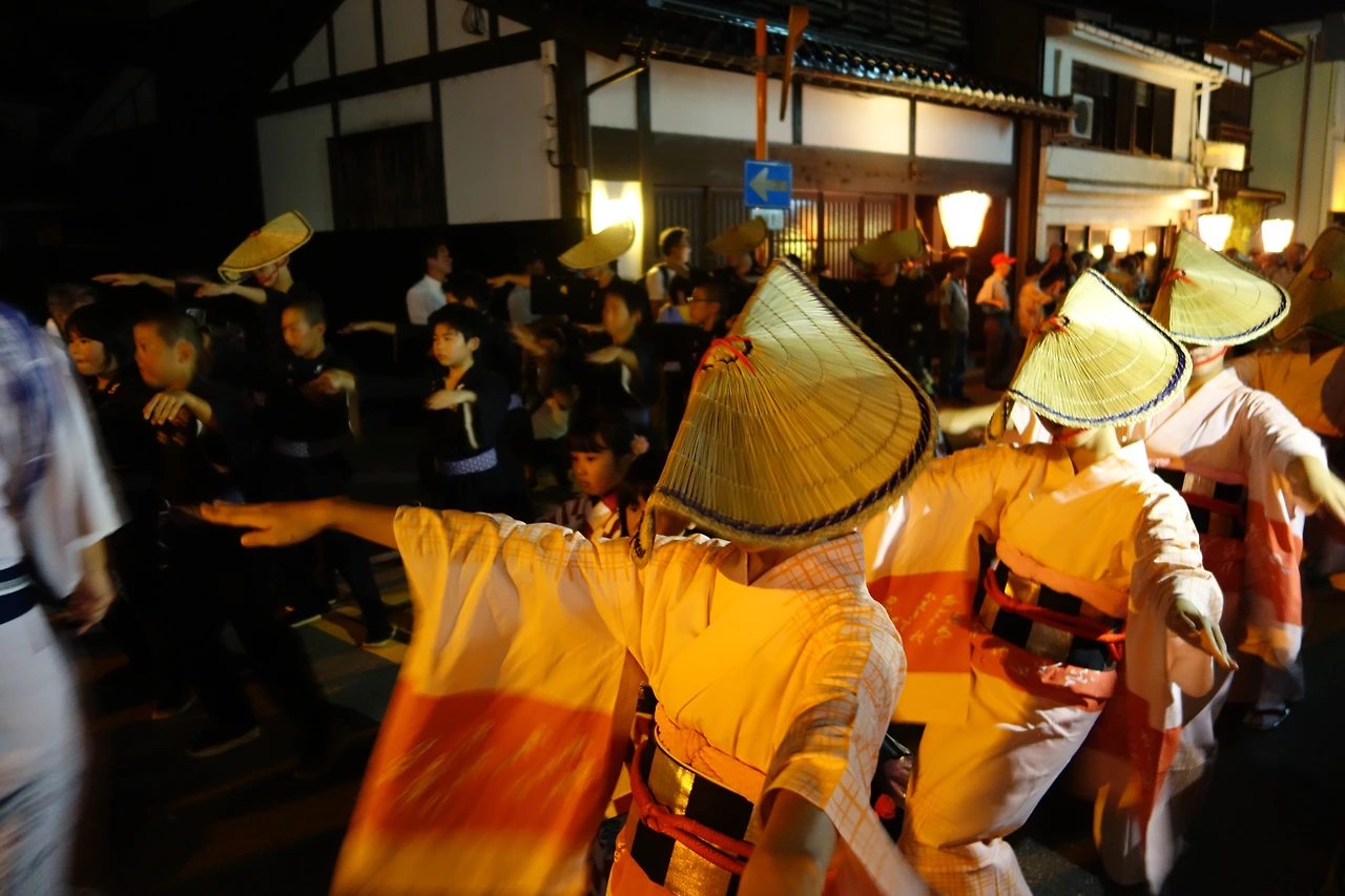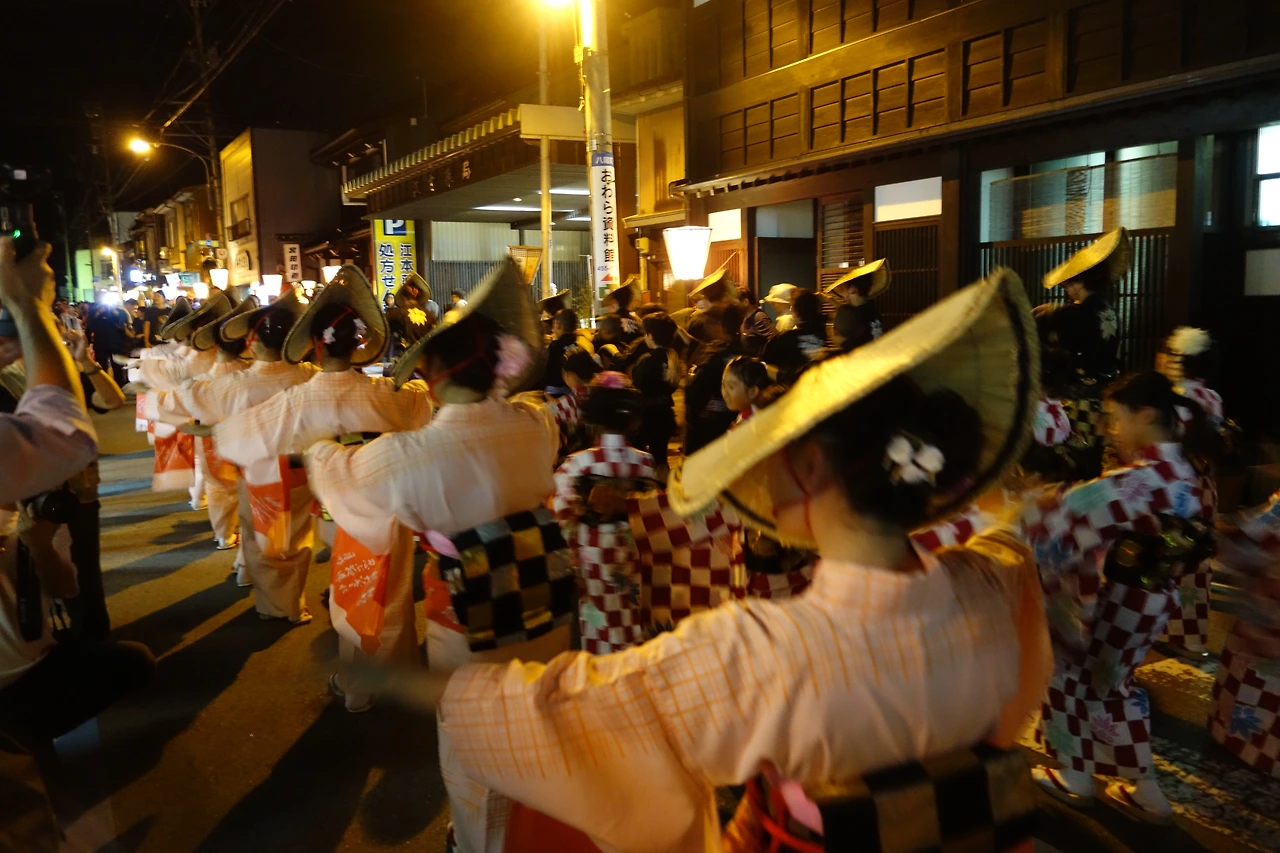 남녀노소 모두 길 한가운데에 줄지어 선 사람들은, 같은 동작을 반복하며 조금씩 거리를 행진하기 시작했다. 나중에야 알게 된 것이지만, 오와라 라는 것은 자연재해 없이 풍작을 기원하는 의미에서 연중 정해진 시간에 하는 행사라 한다. 사람들은 같은 복장을 하고 머리에는 갓을 반으로 접어놓은 듯한 모자를 쓰고 있었는데, 이게 얼굴을 제대로 가려 줘서 얼굴 표정이 하나도 보이지 않았다. 얼굴이 보이지 않으니 어색할 수 있겠지만, 오히려 그 부분이 신비함을 더해주었다.
