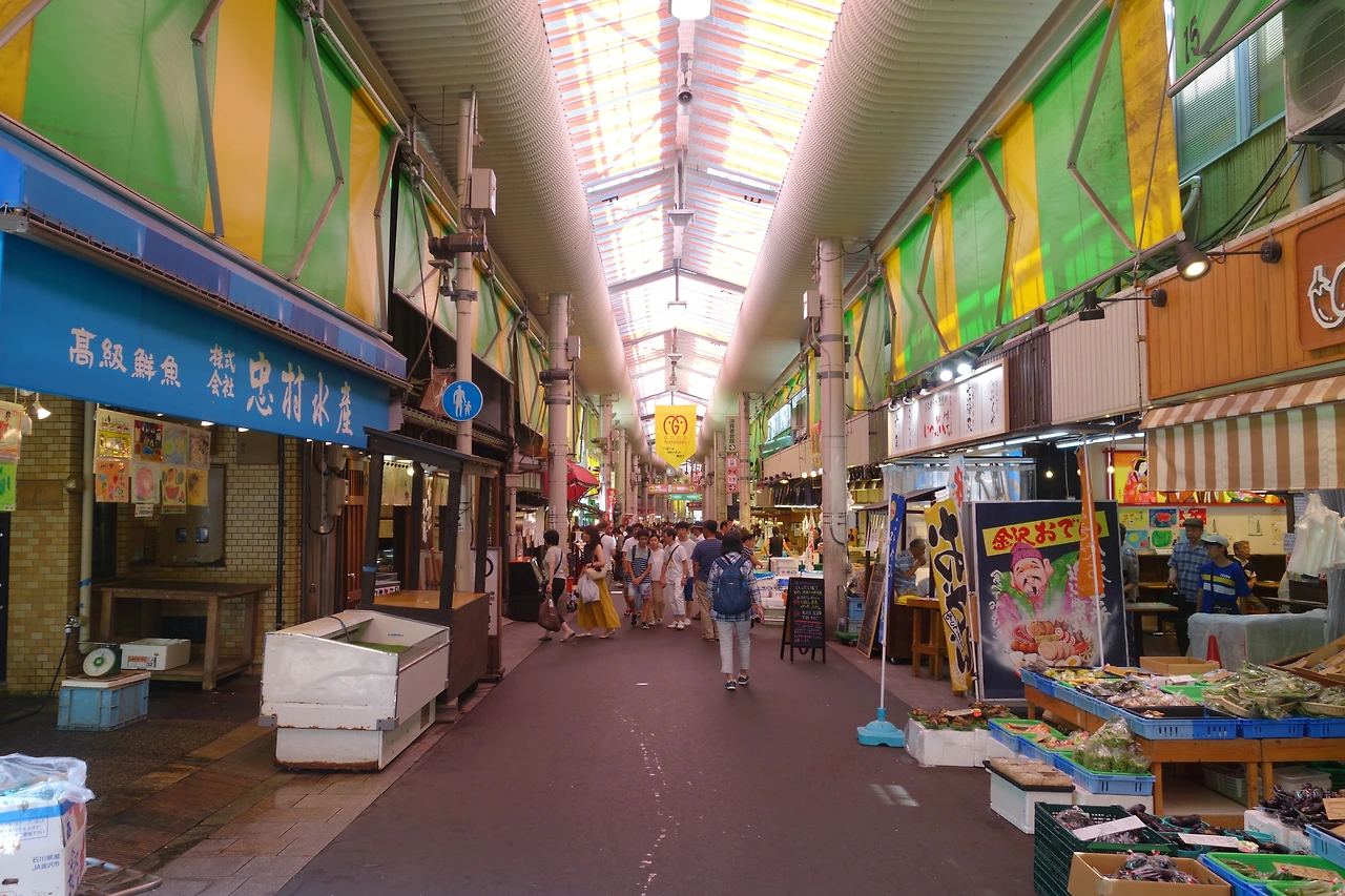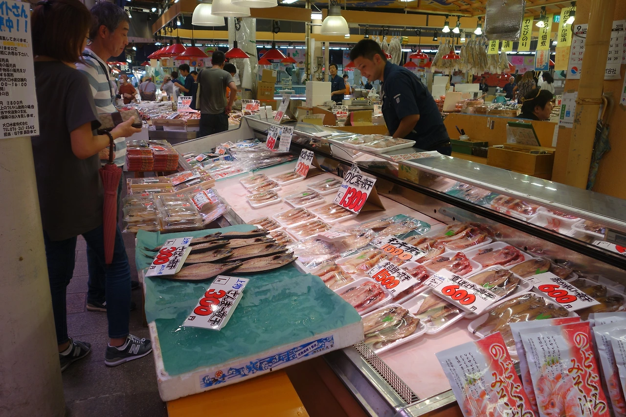 가나자와의 첫날 일정, 게스트하우스에서 조금만 걸어가면 오미초 시장이라는 곳이 있다는 말에 한번 가 보기로 했다. 나는 어디로 여행을 가더라도 그곳의 시장 구경 하는 것을 좋아한다. 잘 정비된 대형마트도 좋지만, 사람들로 북적이는 정돈되지 않은 옛날 시장들 구경하는 재미도 있다.