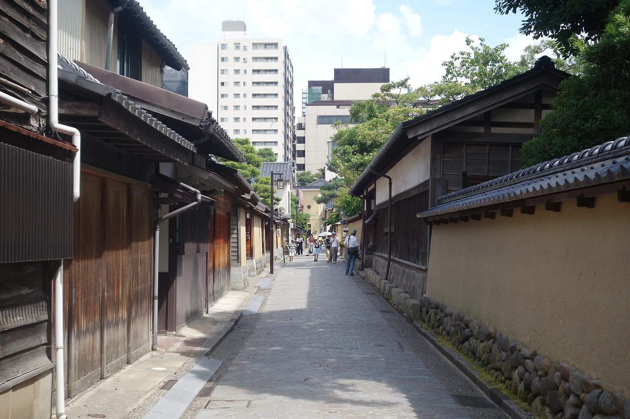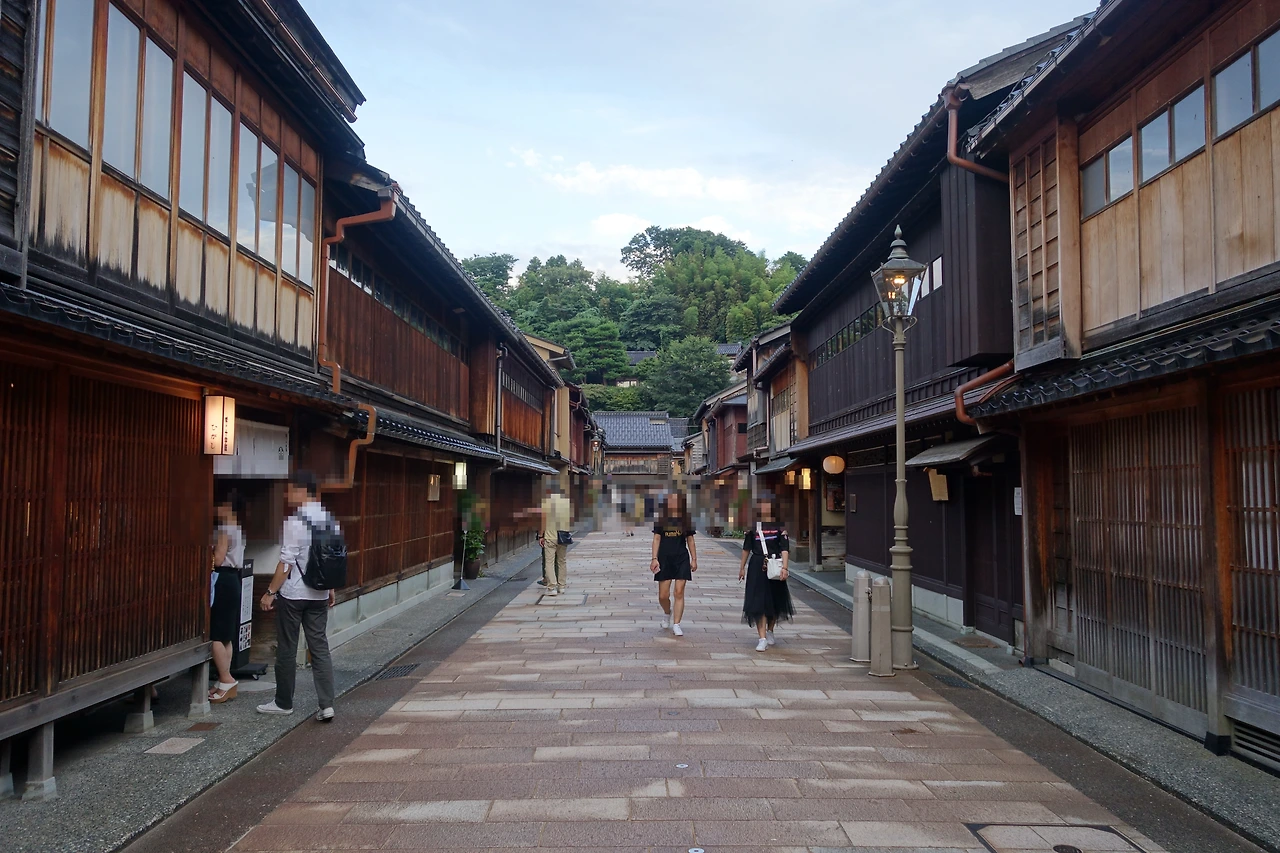 그렇게 조금 더 걸어서 도착한 곳이 히가시차야 라는 곳이었다. 찻집들이 몰려 있는 곳으로 유명한데, 가나자와의 기념품을 파는 가게와 찻집들이 몰려 있다고 했다. 골목은 작았지만 천천히 돌아보기 좋았는데, 가장 큰 골목 뒤쪽으로 언덕이 있고 그 옆으로 낮은 전톡 목조건물이 있는 광경이 인상적이었다. 보통 그 곳에서 사람들이 많이 사진을 찍곤 했는데, 어떻게 된 것인지 나는 사람이 한 명도 없는 사진을 운 좋게 찍을 수 있었다.