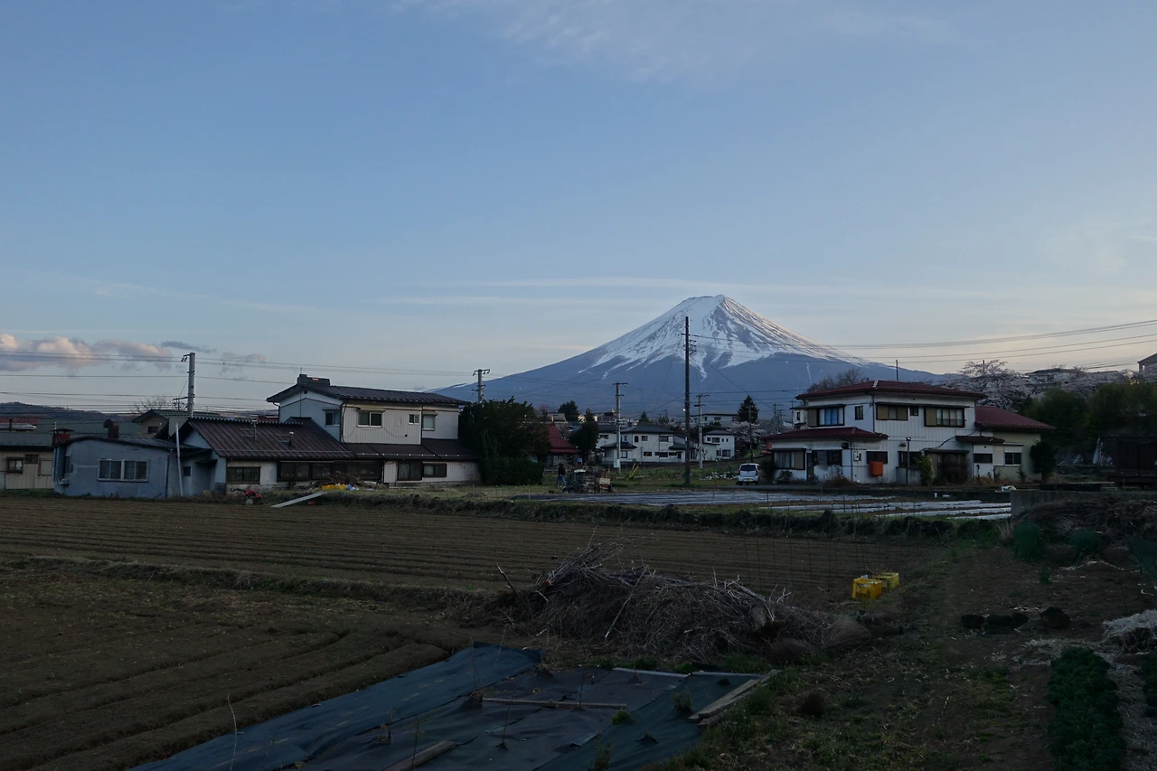 전망대 구경을 마치고 내려오기 시작하니 갑자기 해가 급속도로 떨어지며 어둑어둑해지기 시작했다. 한 시간 전만 해도 밝았던 밭이 순식간에 어두워지고 있었다. 논밭 너머로 서 있는 후지산에도 조금씩 어스름이 찾아왔다.