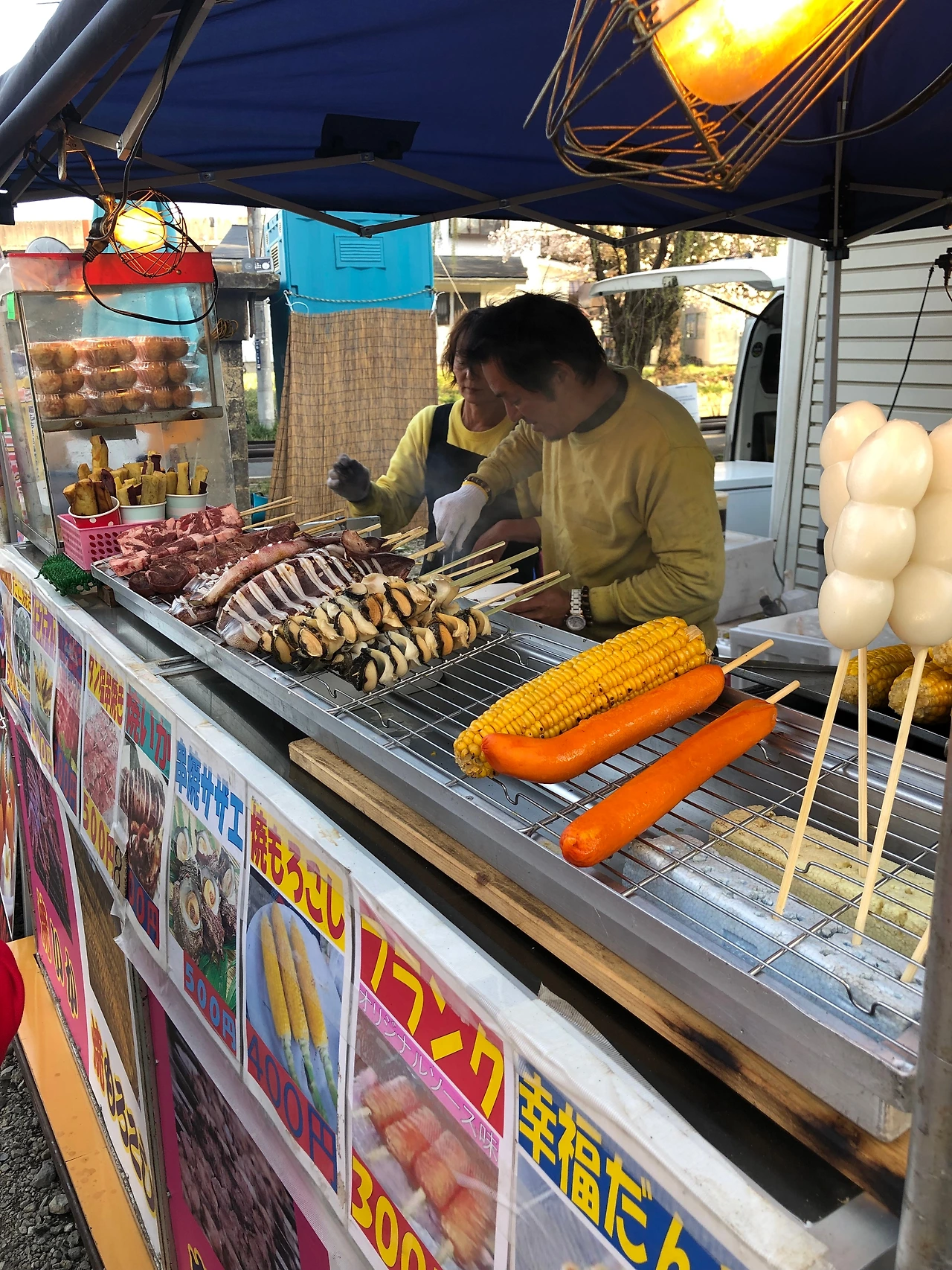 조금 더 걸어가서 공원 입구까지 가니 이런저런 음식을 파는 노점상이 있었다. 옥수수와 소세지, 오징어, 떡 같은 것들을 파는 모습을 보니 옛날 생각이 났다. 비록 취급하고 있는 메뉴는 달랐지만, 옛날 부모님과 함께 갔던 동네 축제 같은 곳에서 파는 음식들이 떠올랐다. 양념에 푹 절여진 닭꼬치나, 치킨 너겟 같은 것을 꽂아서 만든 꼬치 같은 것들.