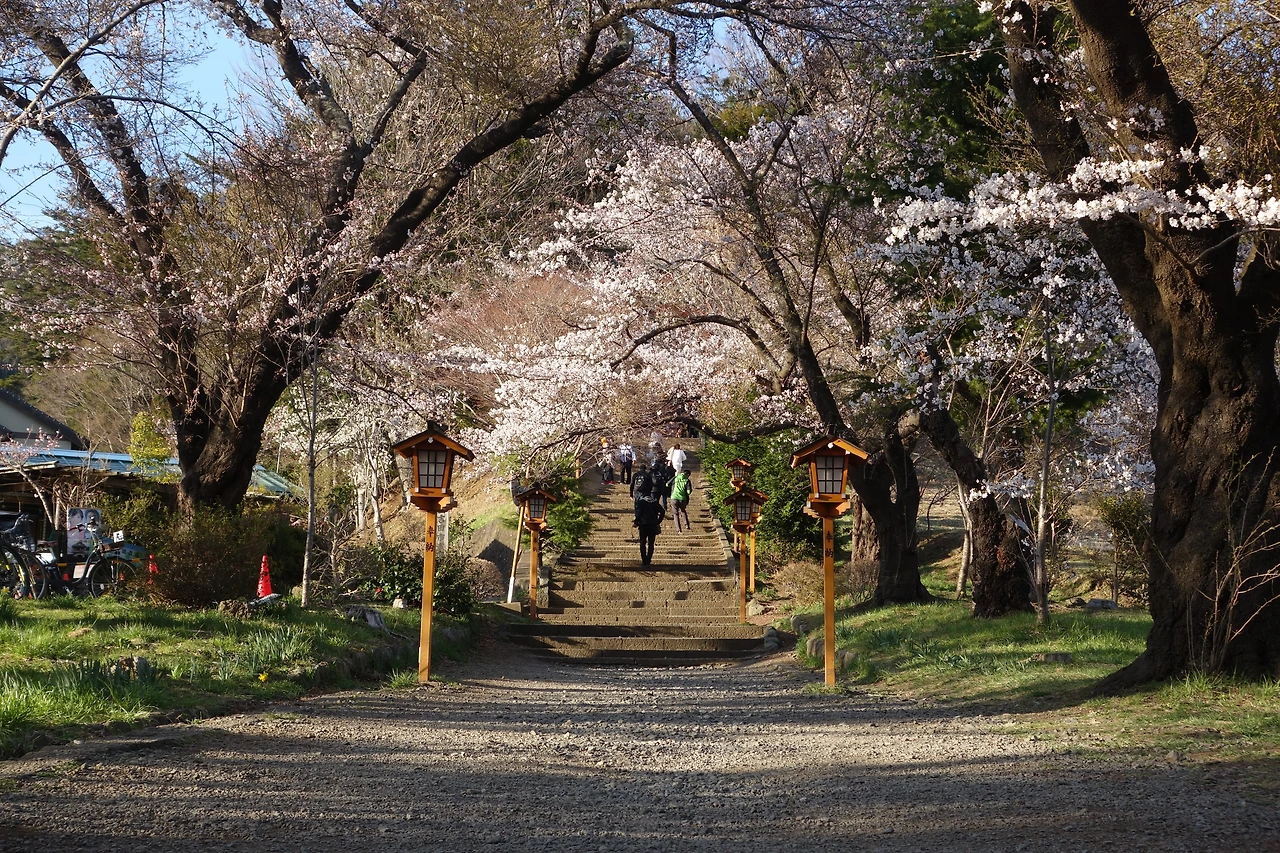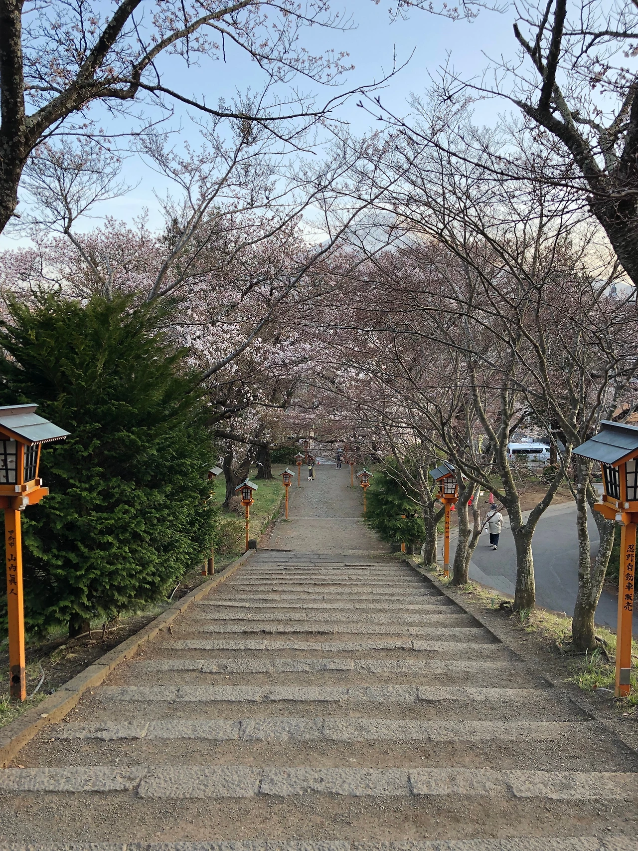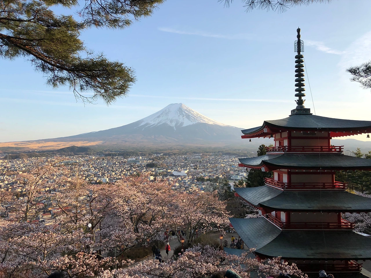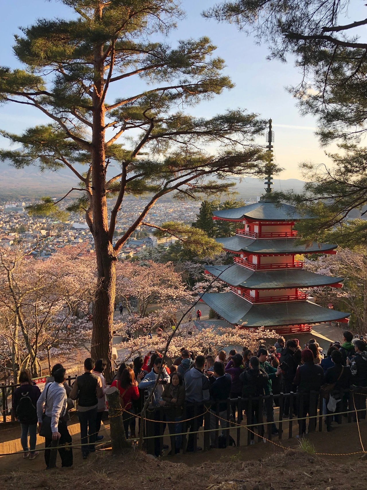 전망대에 올라가니 멋진 광경이 보였다. 벚꽃 사이로 올라와 있는 탑과 위쪽의 소나무, 저 멀리 펼쳐진 거주지와 그 너머 파란 하늘을 배경으로 솟아 있는 후지산. 이곳에 온 것은 처음이었지만 나는 이 광경을 인터넷으로 본 적이 있었다. 인터넷으로 후지산 사진을 우연히 보다가 본 것이 이 사진이었지만, 사진을 봤을 뿐 어디인지는 전혀 알지 못했던 것이다.