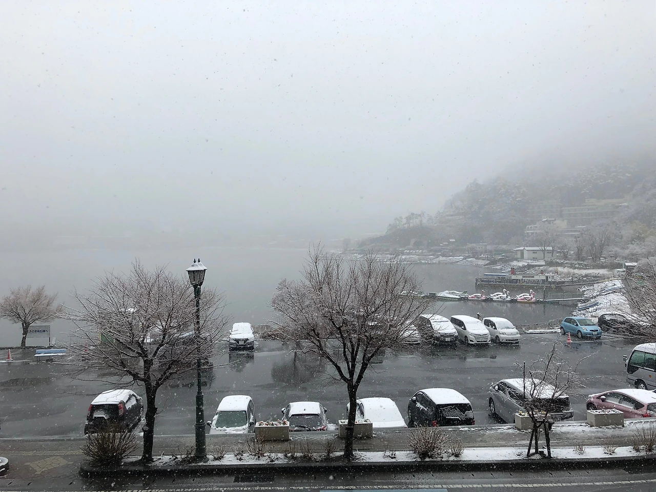 후지산 근처에서 3박을 하는 동안, 마지막 날은 날씨가 갑자기 매우 흐려졌다. 어제는 쨍쨍한 날씨에 구름 한 점 없이 따뜻한 봄 느낌이었는데, 갑자기 눈이 내리고 바람이 몰아치는 것이 신기했다. 나중에 한국으로 돌아가서, 게스트하우스에서 일하면서 자주 만나던 일본 손님에게 물어보니 야마나시 날씨는 그런 경우가 종종 있다고 했다.