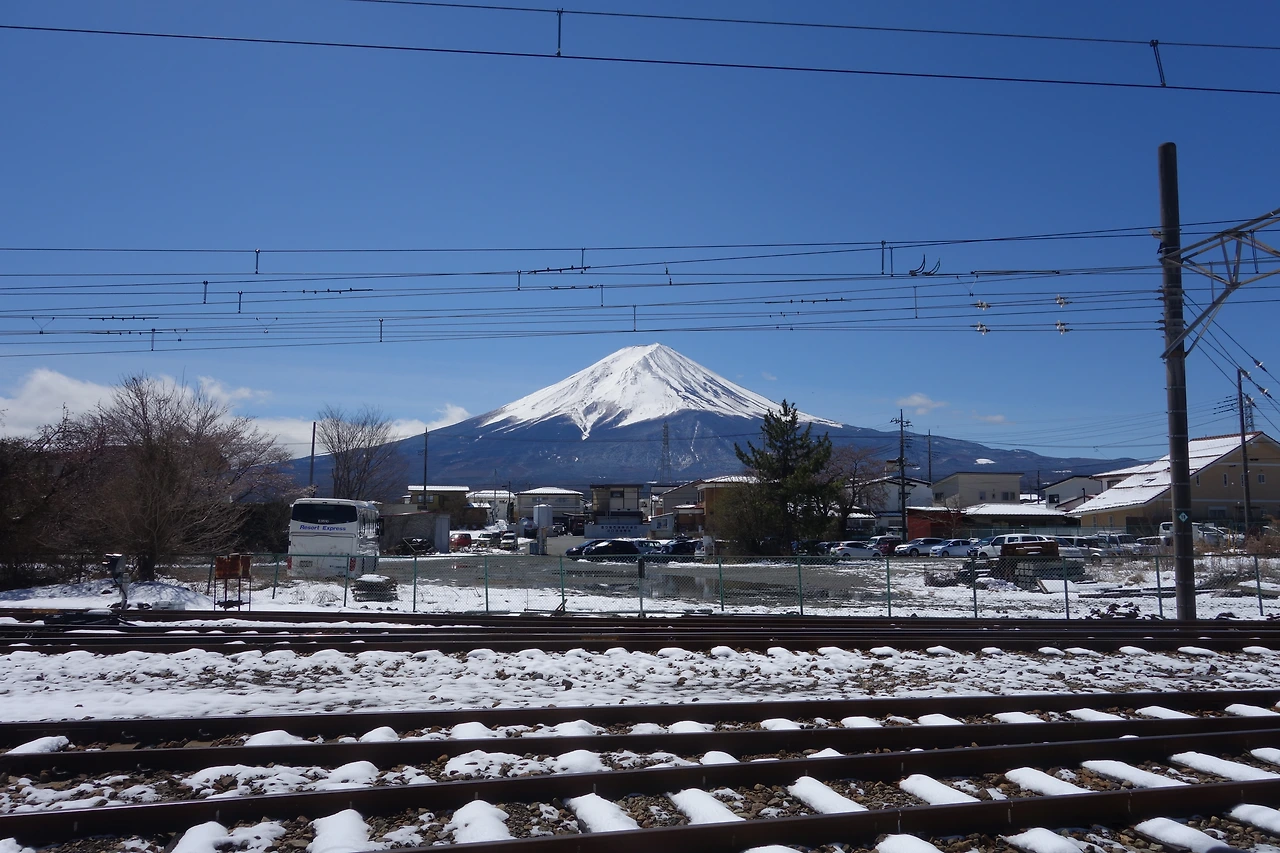 후지산 근처를 떠나 도쿄로 가는 날. 전날 갑자기 폭설이 내리고 내린 직후라 그런지 하늘이 파랗게 맑았다. 분명히 그저께까지는 따뜻한 날씨에 벚꽃나무를 보기도 했는데, 다음날은 하루 종일 흐린 날씨에 눈이 내리고 오늘은 또 맑다니. 정말로 기상천외한 날씨였다.