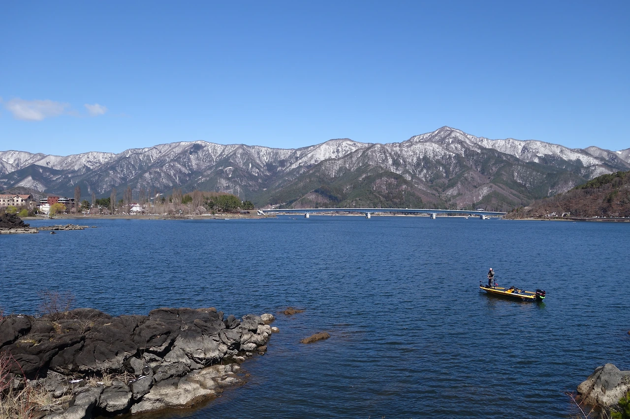 체크아웃 하고 나서 둘러본 숙소 앞 호수는 짙은 푸른색인 것이 마치 바다를 보는 것 같았다. 호수 너머 산 위쪽에는 전날 계속해서 내린 눈이 하얗게 쌓여 있었다. 어제는 호수 너머가 흐릿하게 보였던 것을 생각하면 날씨 변화가 정말 극적인 것 같아 신기했다. 버스를 타기 위해 기차역 근처로 가니 다시금 맑은 날씨에 후지산을 볼 수 있었다. 내린 눈 때문인지, 위쪽의 햐안 부분이 조금 더 커진 것 같았다.