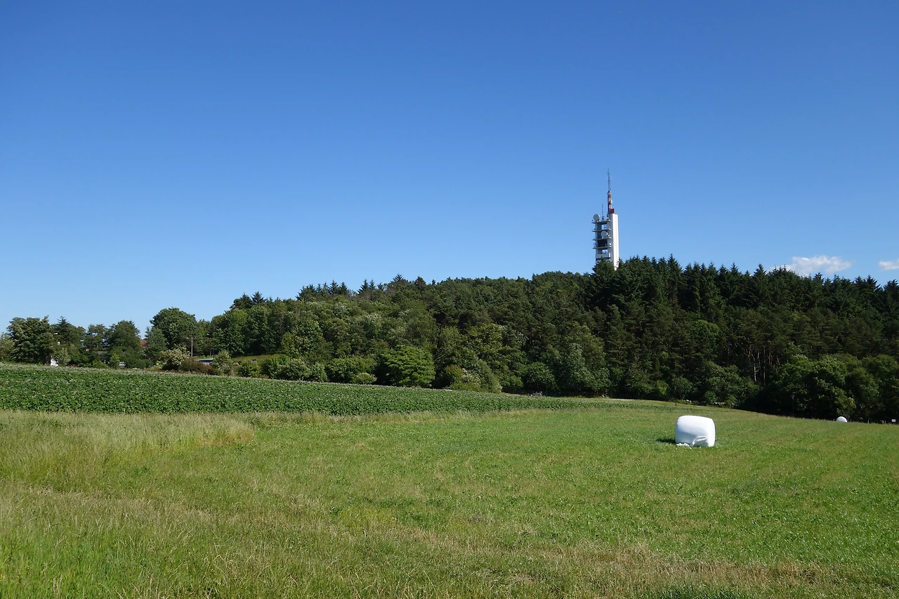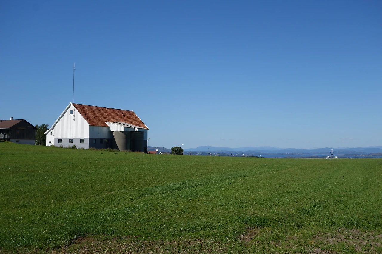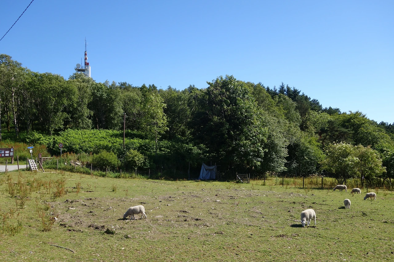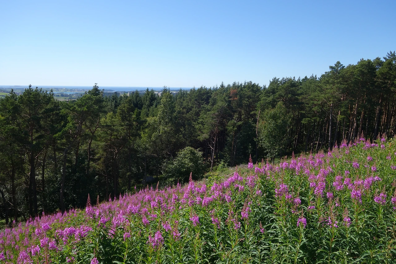바로 앞쪽에 보이는 라디오 타워는 중간 쪽까지 두 층 정도의 높이를 걸어서 올라갈 수가 있다. 더 높이 올라갈 수 있기를 기대했지만 그정도 까지는 아니다. 아쉽긴 해도, 라디오 타워가 있는 위치가 조금 높아서 주위를 둘러볼 수 있다. 피오르드가 있는 쪽의 산들이 보이기도 하고, 다른 쪽으로는 북해 쪽으로 이어지는 수평선이 보이기도 한다. 분홍색 꽃이 피어 있는 작은 들판 너머의 숲도 보인다.