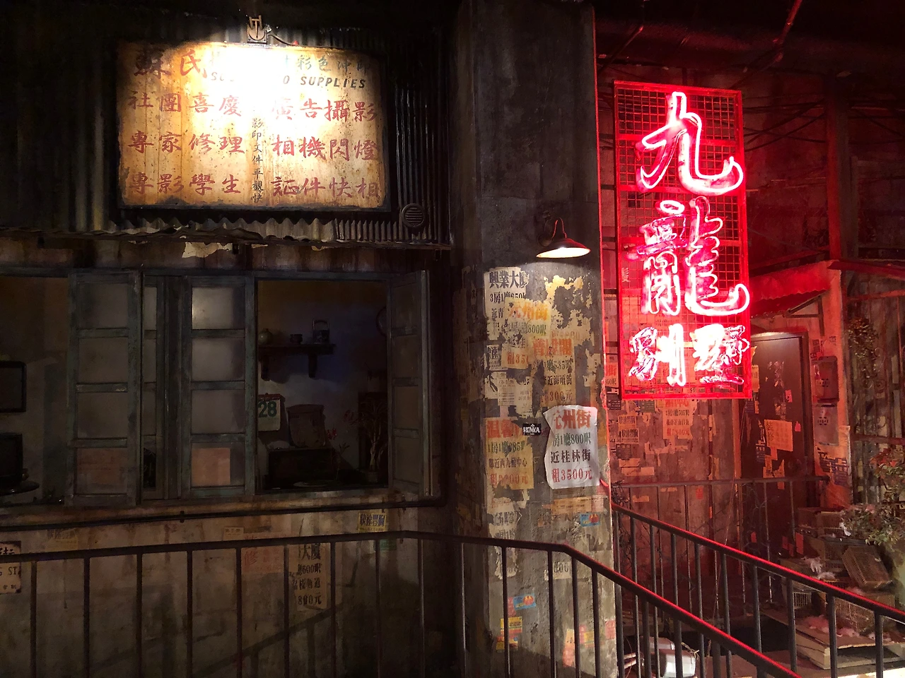 구룡성채는 홍콩에서 1990 년대 철거되기 전까지 있었던 유명한 슬럼가인데, 높은 건물들이 다닥다닥 붙어 있는 고층 슬럼가라는 특이한 형태였다고 한다. 홍콩 영화를 촬영하기도 하고, 게임이나 다른 영화에 많은 영감을 주기도 했다는데, 이곳은 그때 구룡성채 분위기를 재현하기 위해서 당시 쓰던 포스터를 공수하는 등의 노력을 하기도 했다나.