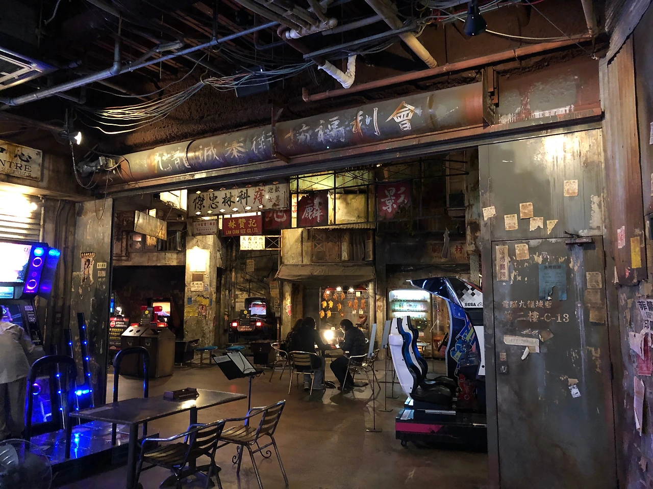 출입구 부터 슬럼가 분위기가 물씬 풍기는 자동문을 지나 안으로 들어가니, 오래된 건물 사이로 네온사인이 반짝이는 음산한 뒷골묵 느낌을 잘 살린 통로를 지났다. 더 안쪽으로 들어가니, 독특한 분위기의 공간이 나타난다.