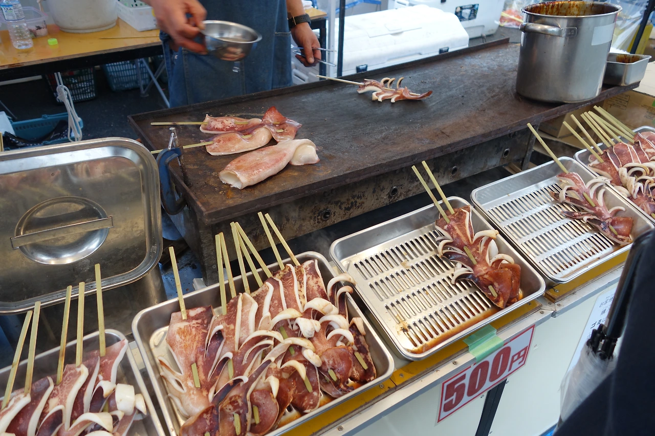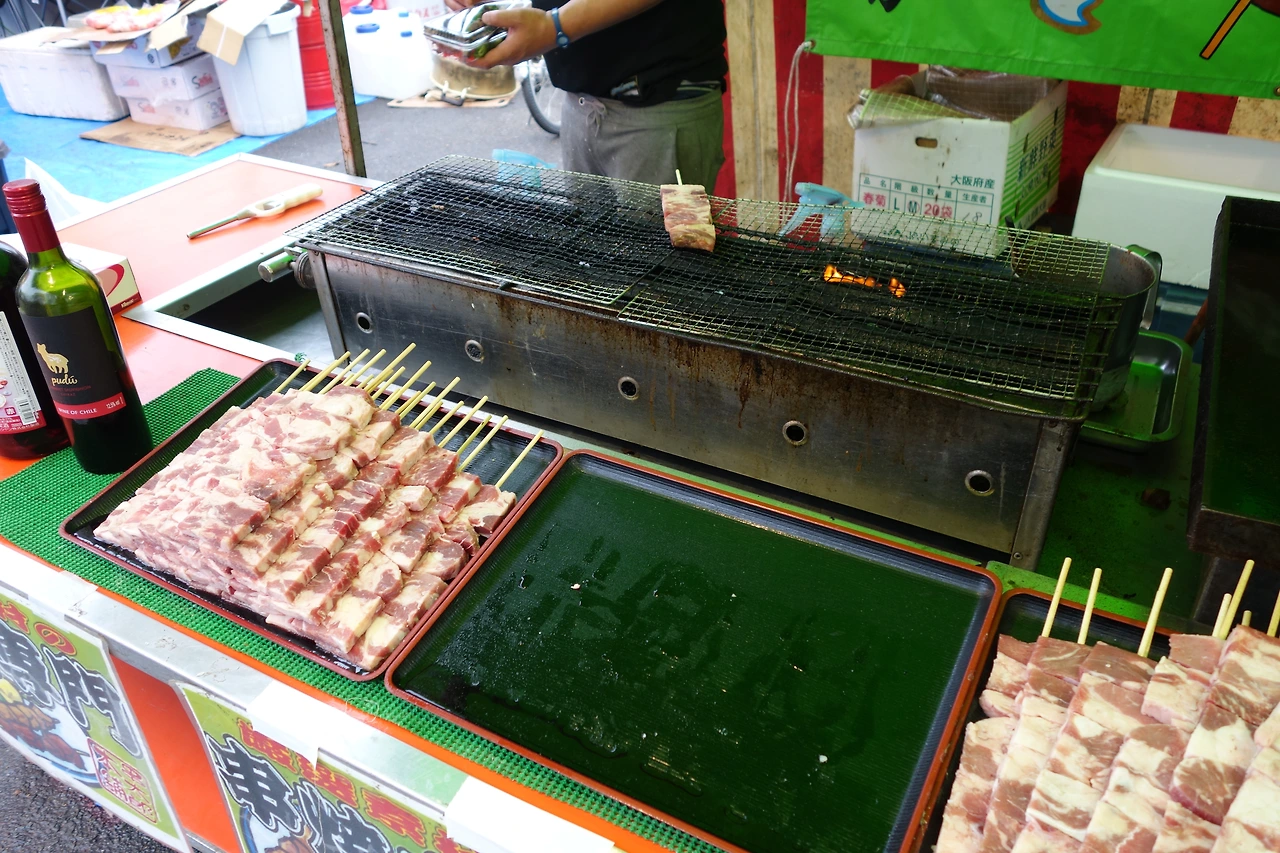 성 주위를 구경하다 보니 간단한 음식을 파는 노점상이 나왔다. 소스를 묻혀 구운 오징어나 소고기 등 간단한 꼬치를 철판에 구워 팔고 있었는데, 동생이 사 먹어 보고 싶어했다.
