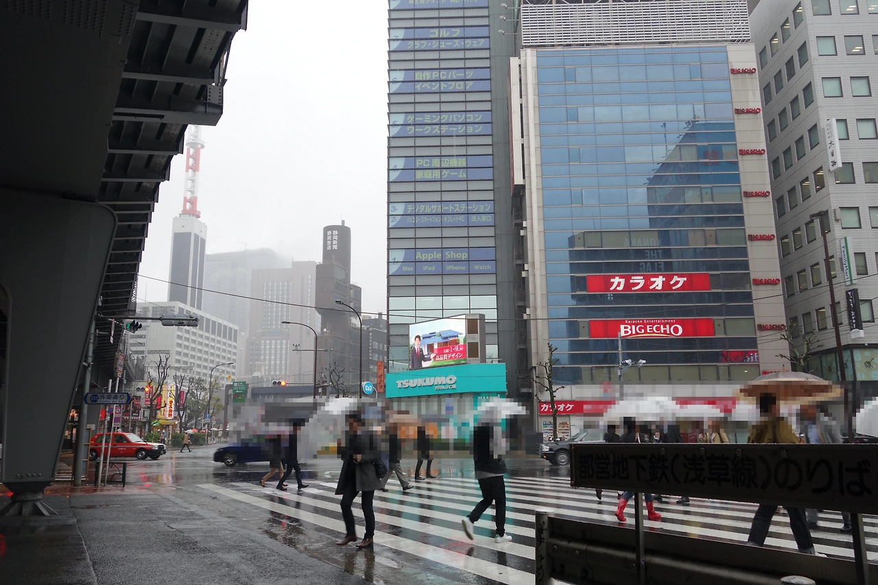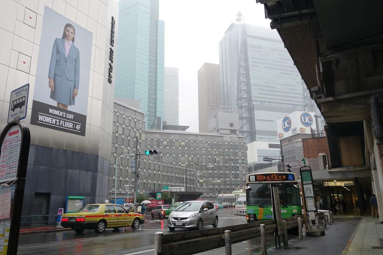 하지만 아침을 먹고 도쿄 구경을 시작하니, 건물 위쪽이 잘 보이지 않을 정도로 뿌옇게 흐린 날씨에서 빗방울이 떨어졌다. 비가 오는 동안은, 하늘보다 건물 안을 더 많이 보았다. 비가 오는 낮 시간대에는 건물 밖 보다는 백화점 식품관 구경을 하고 전철 안에서 비 내리는 도쿄 구경을 하곤 했다.