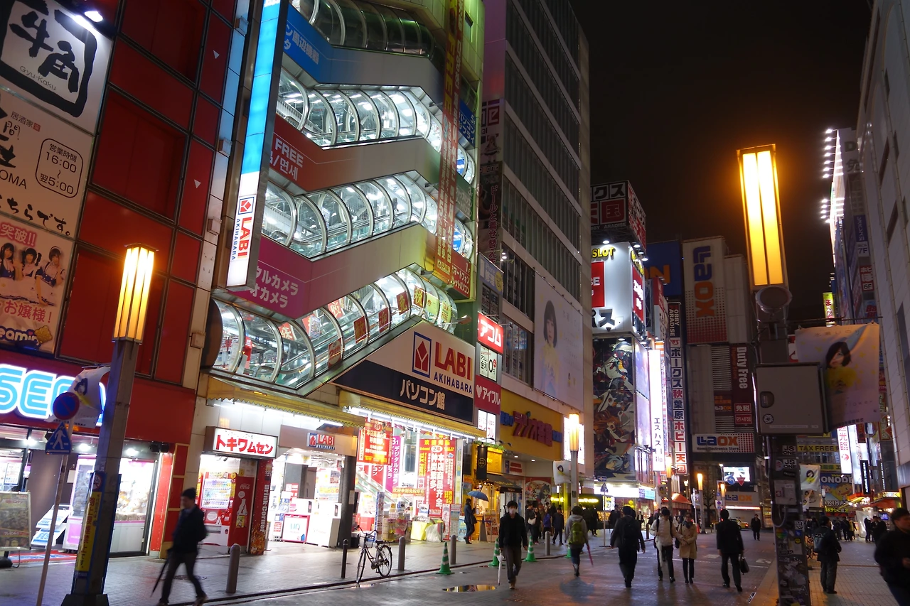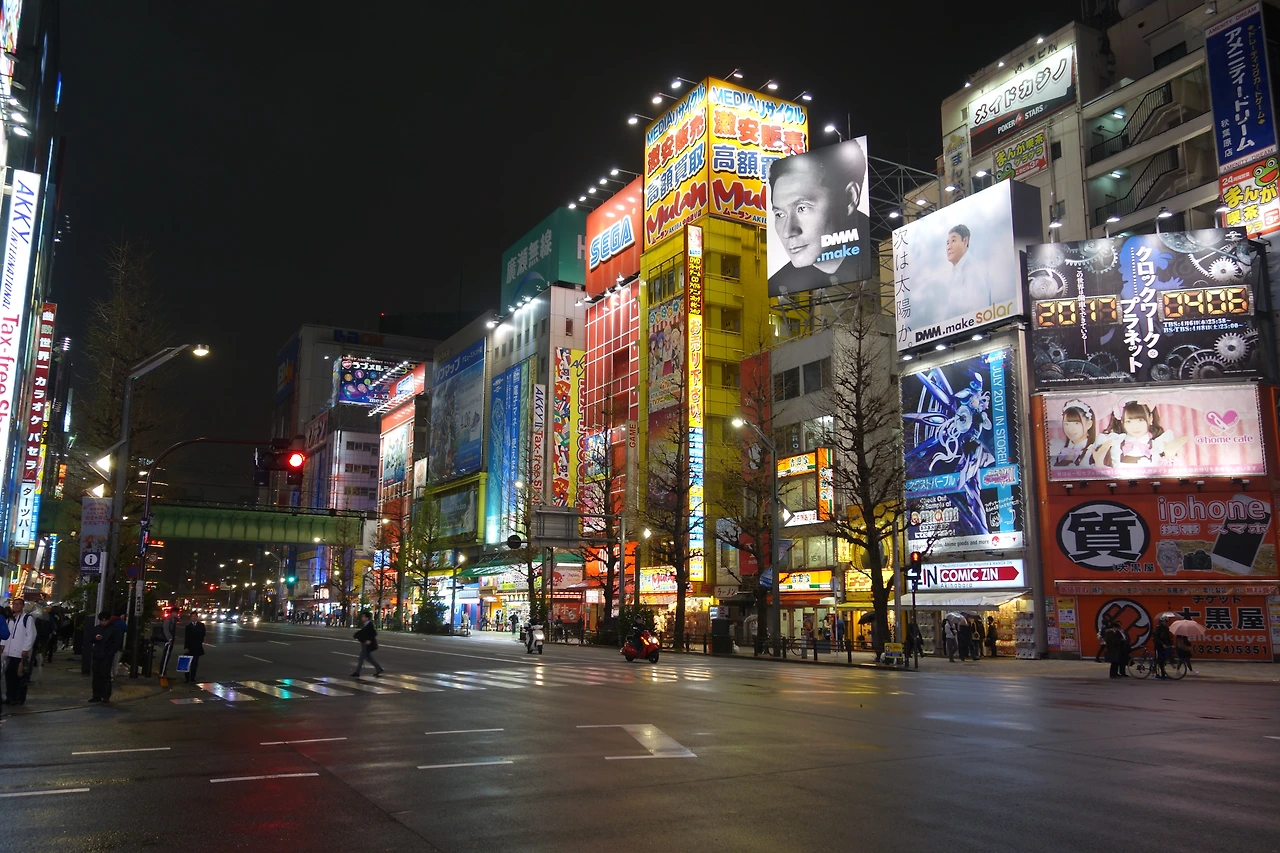 그렇게 구경을 하다 보니 저녁이 되었는데, 밤이 되자 아직도 비는 조금씩 내리고 있었지만 알록달록한 간판들과 조명이 반짝이는 건물들로 가득찬 아키하바라의 거리는 밤이 더 예뻤다.