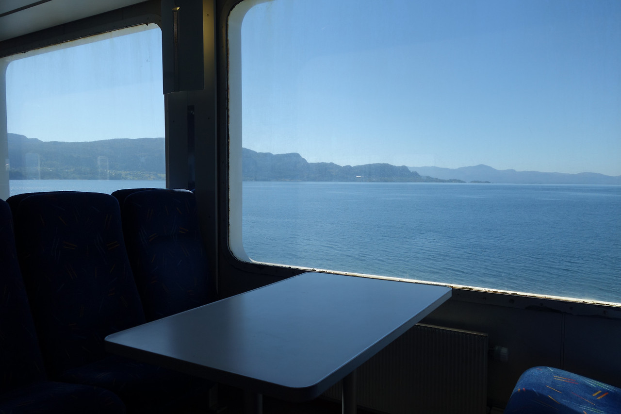 베르겐에서 출발한 버스는 동쪽 방향으로 움직이면서 피오르드 안쪽으로 깊숙히 들어갔다. 중간 중간에 배를 타기도 했는데, 배에서는 내려서 배 안을 구경하고 밖의 경치를 구경할 수 있었다. 배 안에서는 꽤 오래된 것처럼 보이는 승객 대기용 공간이 있기도 했고, 저 먼 지구 반대편에서 전해진 기묘한 춤을 추는 듯한 사진의 액자가 걸려 있기도 했다.