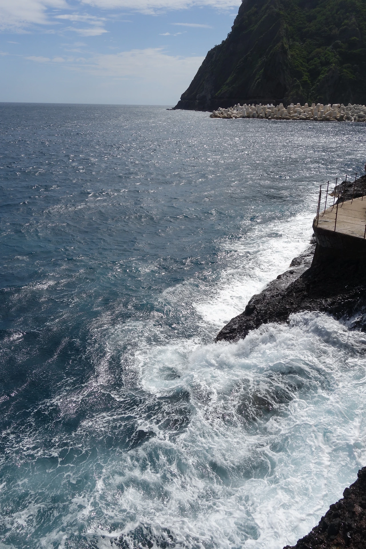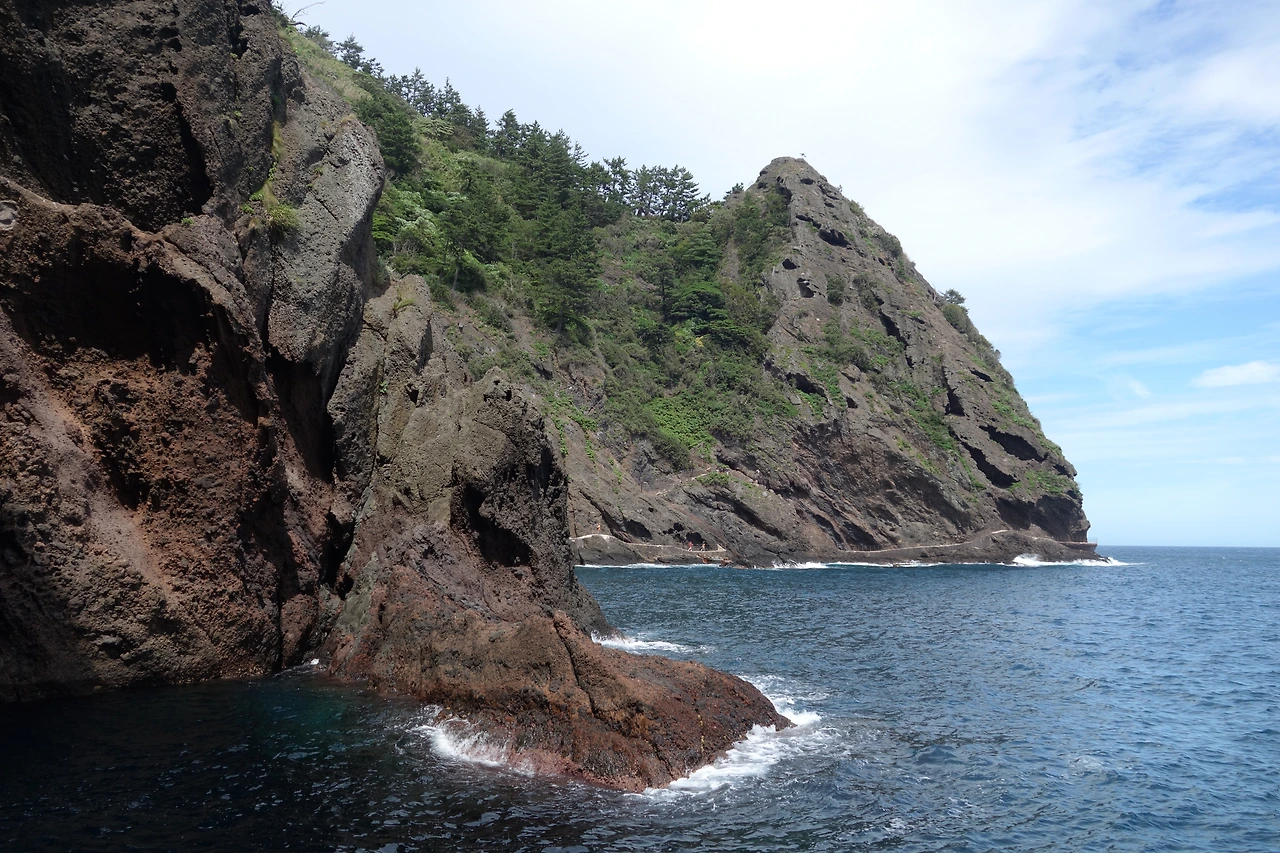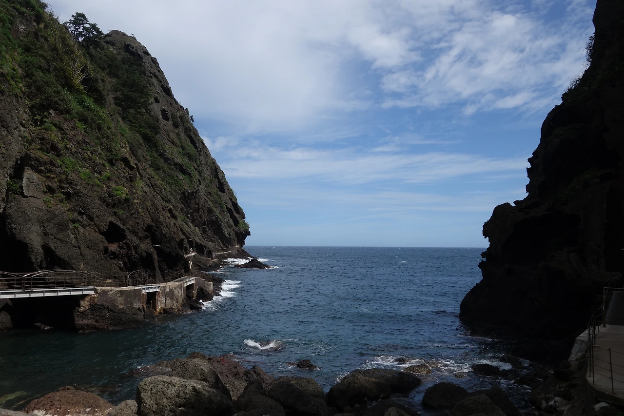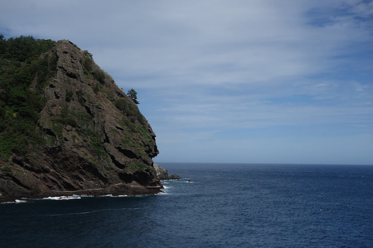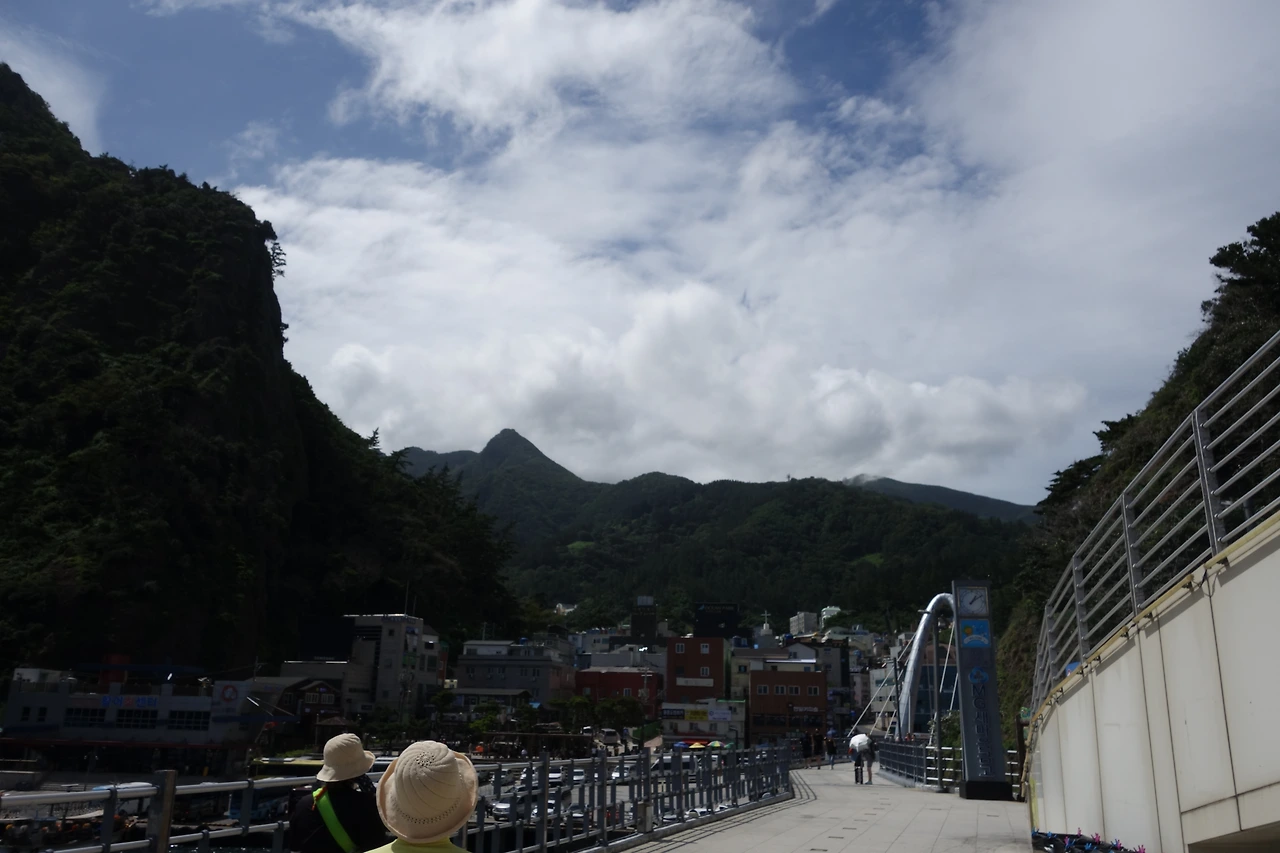 아침까지만 해도 날씨가 흐렸는데, 봉래폭포 구경을 하고 내려오니 날씨가 점점 맑아져서 해안산책로 구경을 할 때쯤이 되니 꽤 파란 하늘을 볼 수 있었다. 해안산책로 쪽으로 가며 도동을 바라보니 구름에 가려서 잘 보이지 않던 울릉도의 산봉우리들이 보였다. 작은 섬인데도 높아 보이는 산봉우리와, 산봉우리들이 늘어선 능선이 이국적인 느낌이라 신기했다.