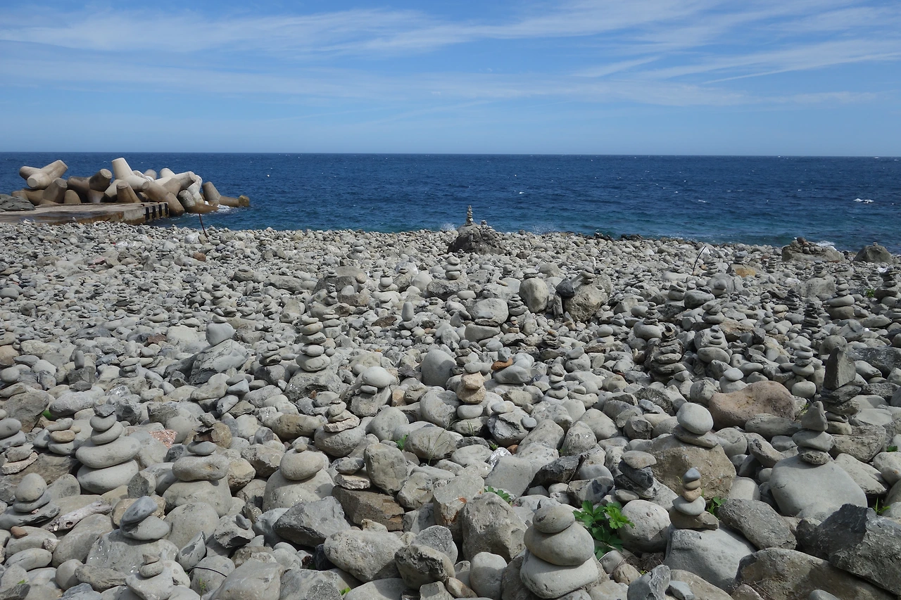 하지만 절벽 아래를 파내어 만든 것 같은 산책로는, 파도치는 동해 바다를 보기에 딱 좋다. 짙푸른 파란색이 남색으로 변하다 못해 검어지는 것 같아 보이는 바다를 보며, 일렁이는 바다가 짠내를 풍기며 밀려와 하얗게 부셔지는 모습을 바로 아래에서 볼 수 있다. 그렇게 계속해서 걸어가다 보면 자갈이 흩어진 작은 해변이 나온다. 수많은 여행객들이 와서 하나씩 올려두고 갔을 것 같은 돌맹이 탑들을 보면, 그곳이 해안산책로의 끝이다.