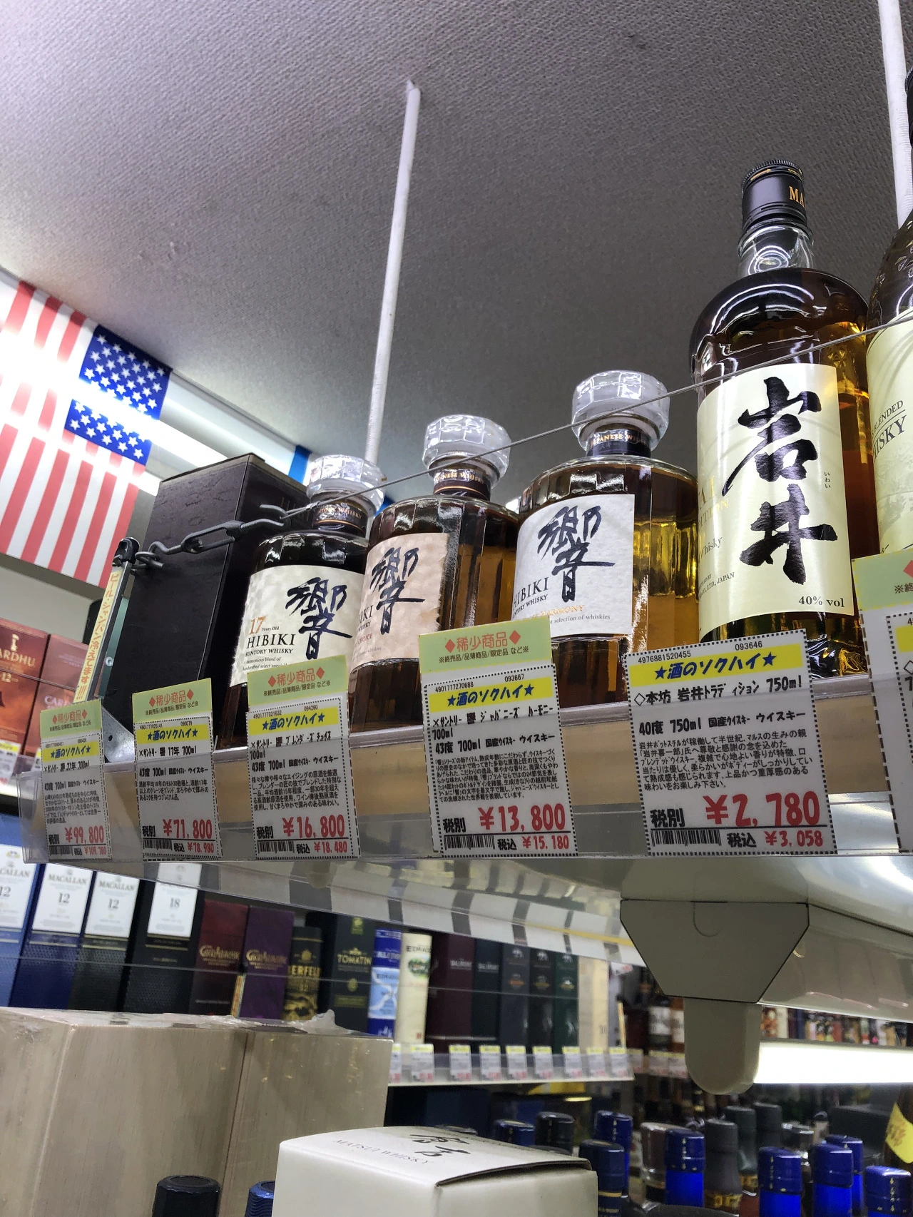 그런데 지나가다 보니 아주 작은 주류 매장이 보였다. 그러고 보니, 텐몬칸 번화가 뒤쪽 골목 사이에는 그런 주류 매장들이 있었다. 구글 맵에 검색도 안 되는데, 저녁 늦게 영업을 시작해서 새벽까지 장사를 하는 곳. 가게 이름이 주류 배달이라고 되어 있는 재미있는 곳이었는데, 사이즈가 아주 작고 이름부터가 근처 가게에 주류 배달 위주로 영업하는 곳일거라는 생각에 구경하지 않았었다. 그런데 어차피 지나가는 김에 한번 궁금해서 들어가 보자 하는 생각으로, 들어가 보았다. 그리고 그곳에 있었다. 위스키가. 그것도 여러 병이.