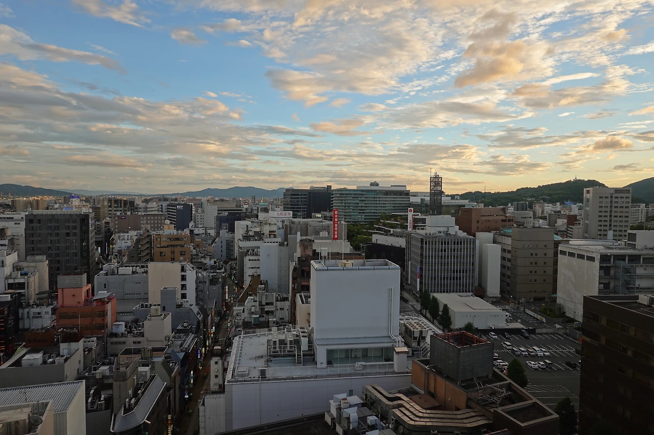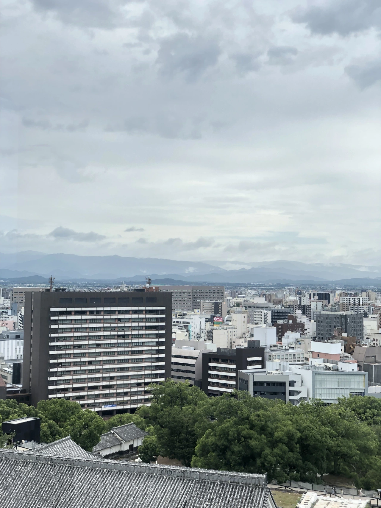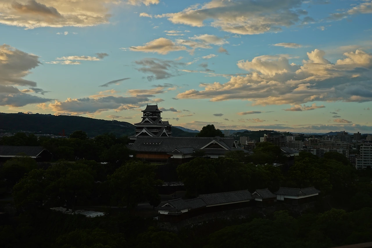 너무 늦지 않게 가고시마에 돌아갈 생각이었지만, 해 지는 것은 보고 갈 생각이었다. 마침 잘 알아보니 구마모토 성 근처에 시청 위쪽이 무료개방 되어서, 노을을 거기서 봐도 되겠다 싶었다. 휴일이라 그런지 시청은 닫혀 있었지만, 전망 공간을 방문할 수 있도록 문이 열려 있었다.
