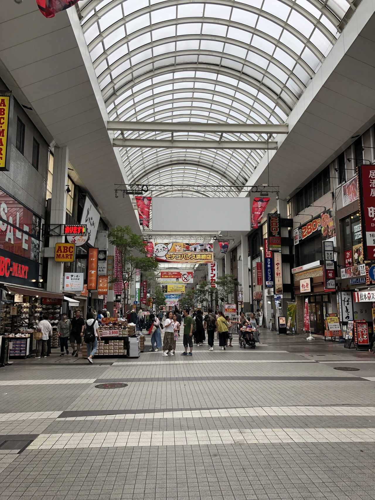 구마모토 번화가를 구경하다가 안쪽 큰 길과 구마모토 성이 잘 보이는 곳에서 맥주를 마시면서 쉬거나, 디저트 가게를 돌아다니거나 하기도 했다. 햇볕이 쨍해졌다 흐려졌다를 반복했는데, 전반적인 기온이 습하고 더워서 길게 걸어다니기는 쉽지 않았다. 서늘한 실내에 들어가서 구경을 했다가 밖을 좀 걸어다니고를 반복하면 조금 괜찮았다.