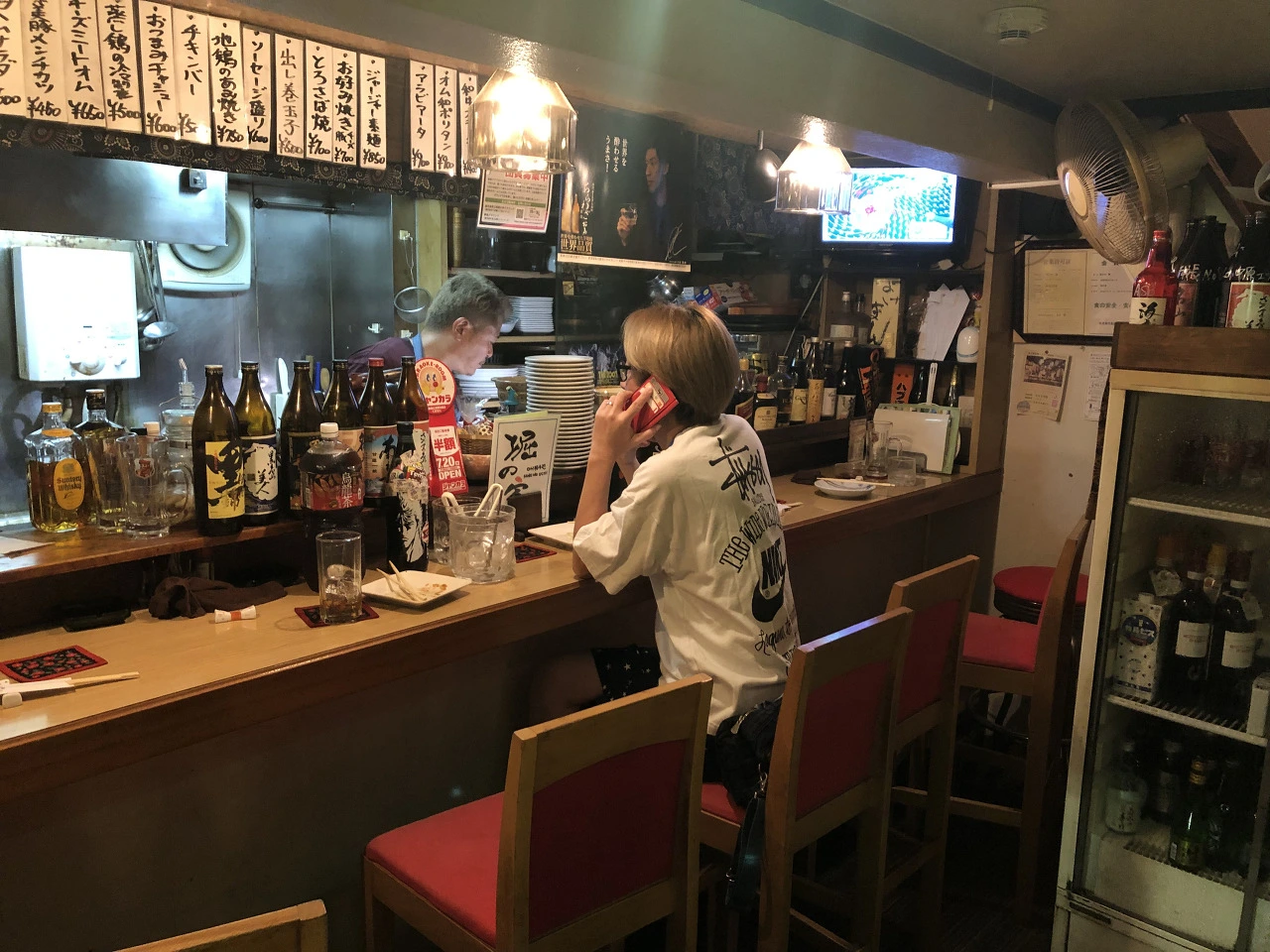 일본어를 잘 못하지만 귀동냥으로 들은 것과, 어플의 번역기를 이용해서 어찌어찌 가게 사람들과 대화를 할 수 있었다. 번역기를 바로 보여주기보다는 어떻게든 읽어가며 대화를 나누고 싶어서, 말 하고 싶은 것을 번역기로 돌려서 그것을 읽어가며 대화를 했다. 사장은 이 골목길 어두컴컴한데 오는 것이 무섭지 않냐고 물었고, 나는 텐몬칸(가고시마의 번화가) 쪽은 분위기가 조금 무서워서 나와는 안 맞는다고 이야기 했다. 그 말을 들은 다른 손님이 자기가 한국을 가 봤는데 무슨 말인지 알것 같다고, 한국과는 분위기가 좀 다르지 하고 말했다.