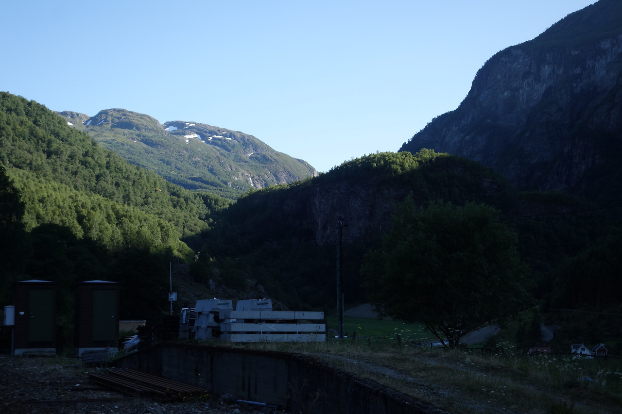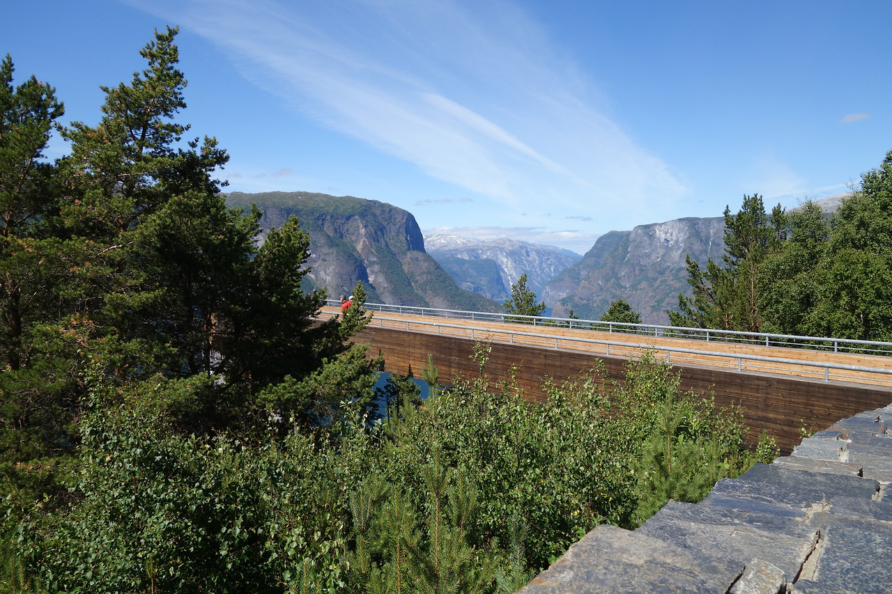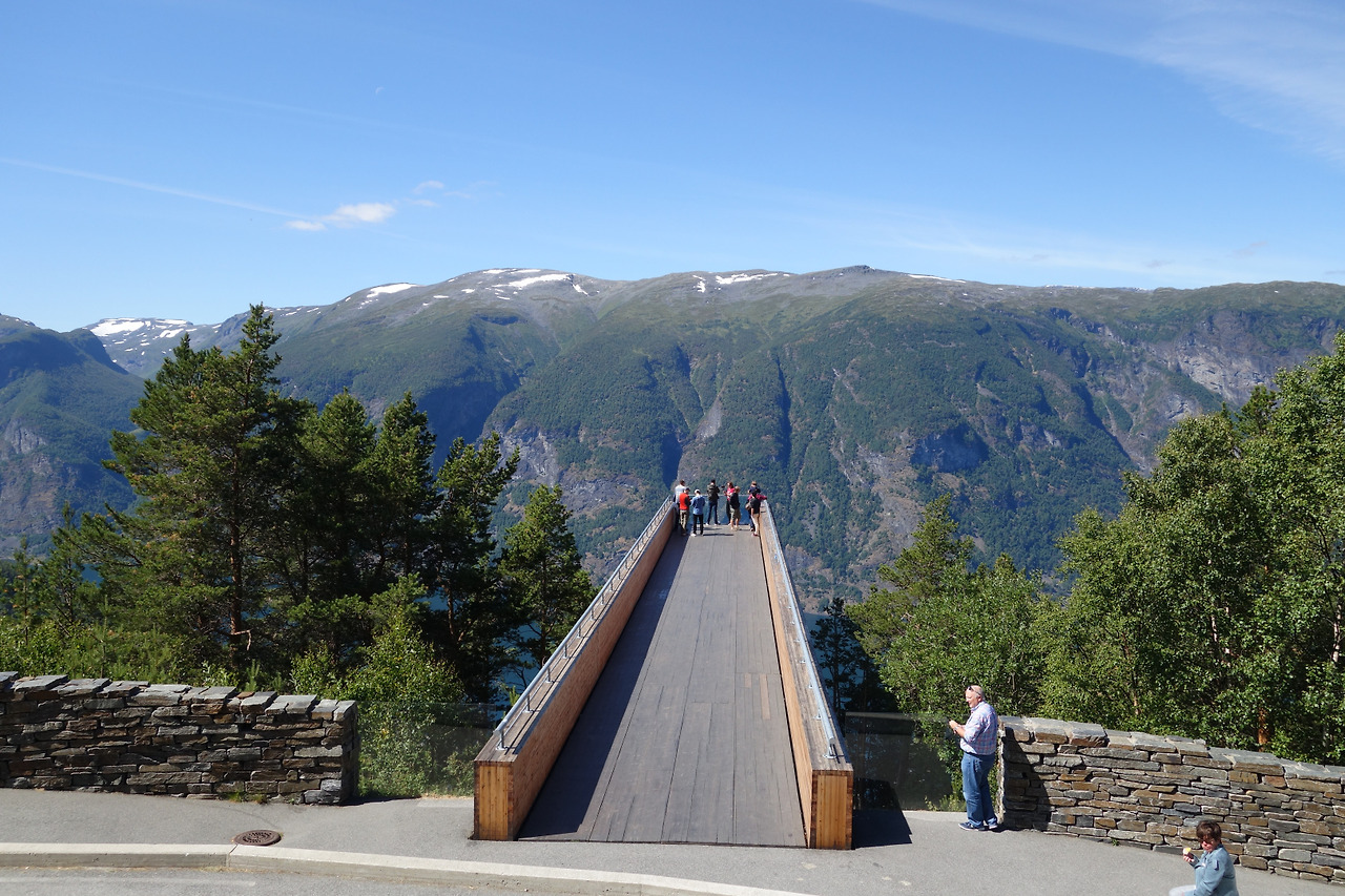 잠시 후 시간이 되어 작은 봉고차가 도착하고, 차에 올라 전망대로 간다. Stegastein 스테가스테인 전망대라고 불리는 이곳은, 플롬에서 차를 타고 30분도 안되는 짧은 시간 안에 도달할 수 있다. 버스 안에서는 개인마다 주어진 작은 헤드셋을 통해 나름 주위 경관에 대한 해설을 들을 수 있지만, 사실 주위 경관을 구경하다 보면 굳이 해설 내용을 들을 필요는 없는 것 같다.