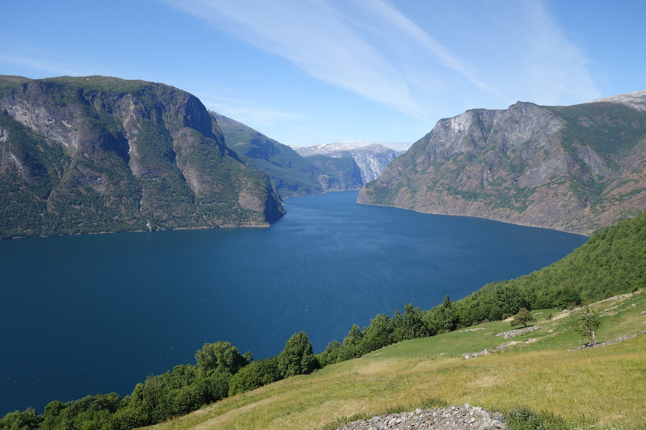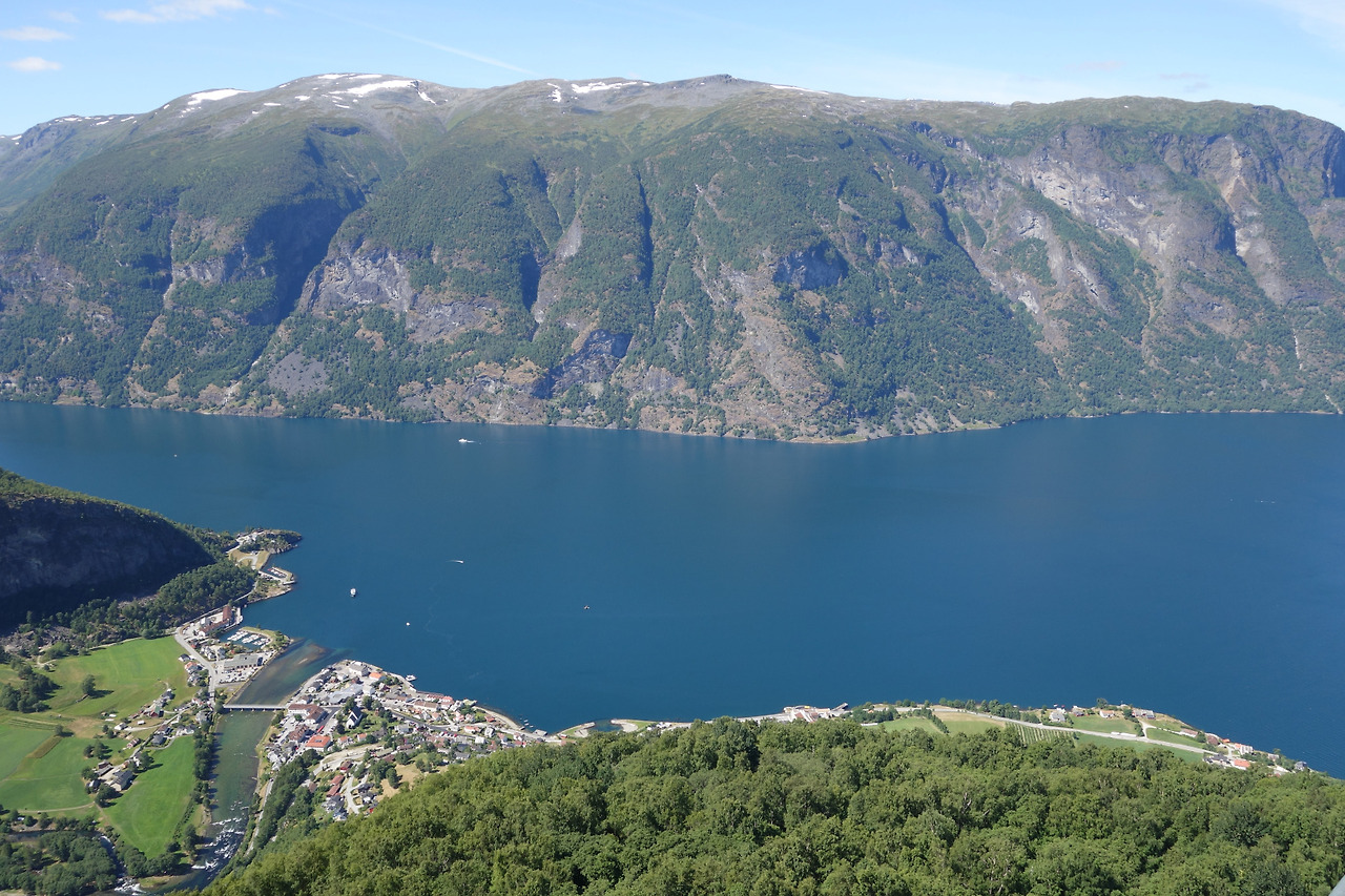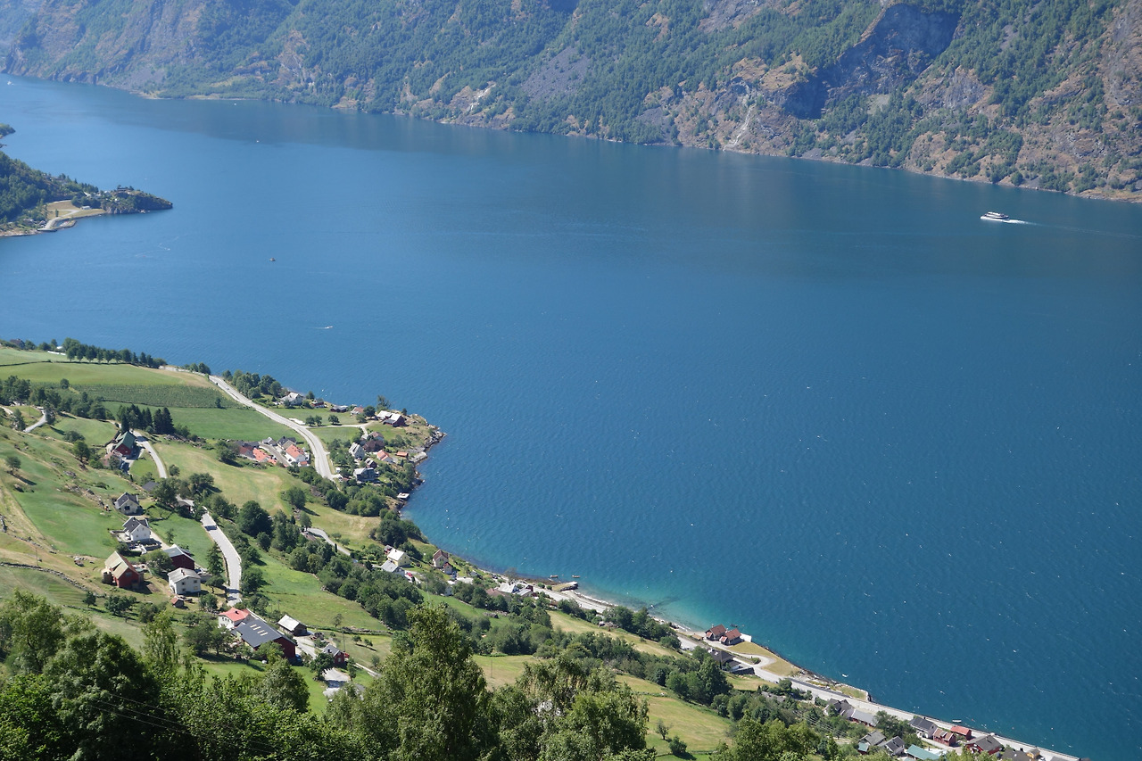 버스는 스테가스테인 전망대 근처의 주차장에 서서 사람들을 내려놓는다. 절벽에 마치 쭉 뻗은 미끄럼틀처럼 놓여 있는 이 특이한 구조물 끝에 가면 깊은 피오르드 계곡이 한눈에 들여다보인다. 저 멀리 작은 마을부터 시작해서 깎아지른 벼랑 위 아직도 녹지 않은 눈들까지. 계곡을 채운 짙은 남색 바닷물 위로 배가 오가는 모습도 선명히 볼 수 있다.