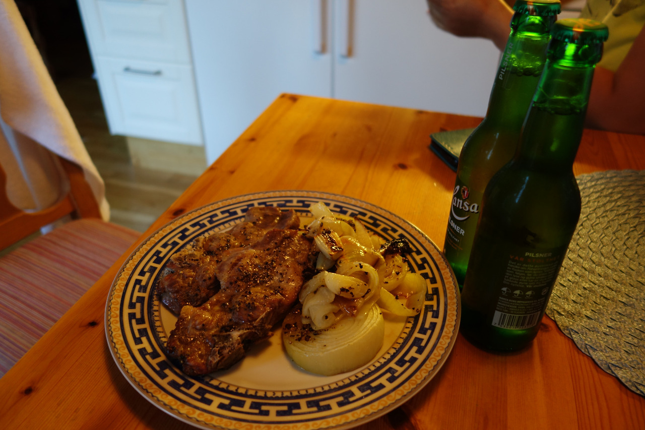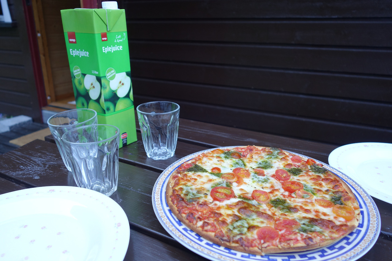 숙소에 돌아와서 저녁으로는 미리 사 둔 냉동피자를 먹었다. 납작한 상자라 냉동고에도 많이 들어가고 오븐에 넣어서 돌리기만 하면 냉동 음식 치고는 준수한 맛을 낸다는 것이, 한국의 냉동 만두와 비슷하다. 교환학생 하며 많이 먹었던 냉동피자와 함께, 좋은 품질로 저렴하게 먹을 수 있는 사과주스를 마셨다. 피자로는 약간 부족해서 포장된 양념고기도 구워 먹었다.