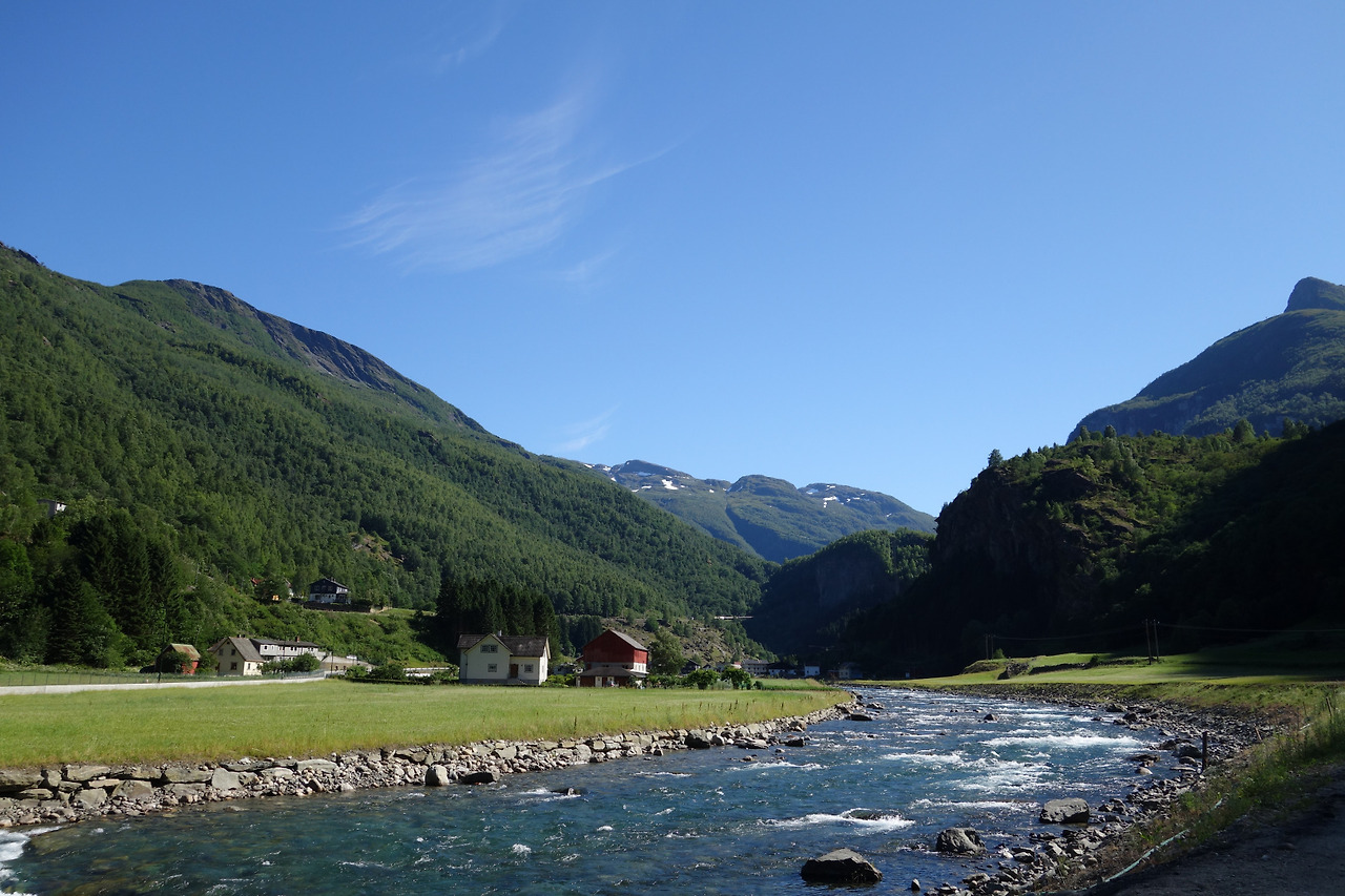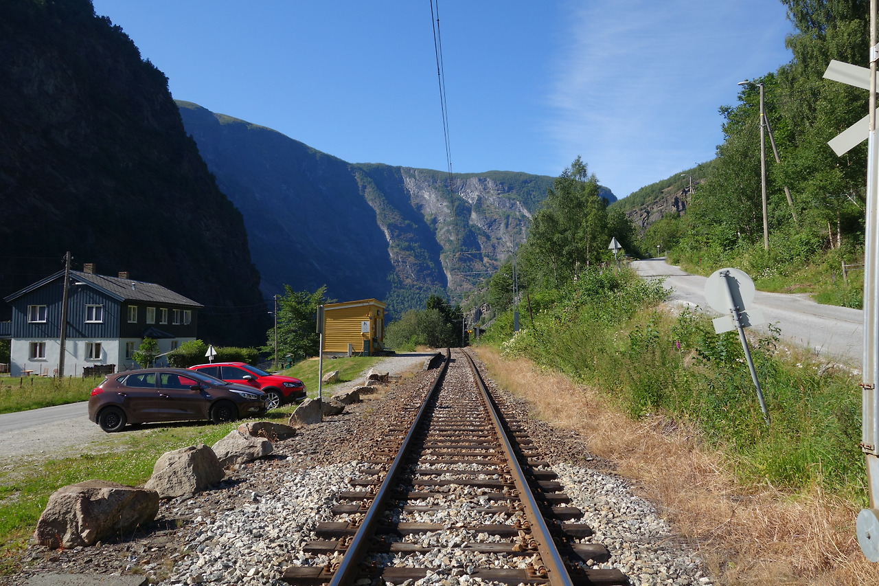 깊은 계곡 사이로 흐르는 큰 물살 옆으로 길이 나 있는데, 종종 나와 부모님들처럼 지나다니는 관광객들 외에는 다니는 사람이 거의 없어서 한적했다. 중간에 초등학교 처럼 보이는 건물과 교회도 지나고, 작은 기차역을 지났다.