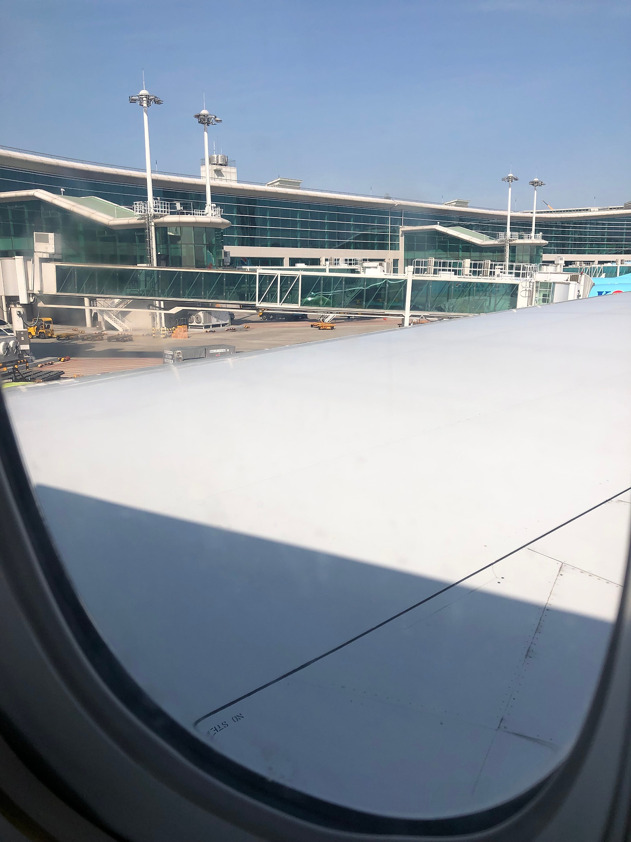 분명히 예약할 때는 이런 느낌이 아니었는데 왜 이렇게 된걸까. 좋은 날씨 아래 창 밖으로 볼 수 있는 것이라고는 아래쪽 절반 가까이 가리는 비행기 날개 뿐이라니. 날개를 자세히 볼 수 있다는 것이 장점이면 장점일까. 아쉬운 것은 아쉬운 대로 어쩔 수 없다고 생각하며 자리에 앉았다. 비행기가 생각보다 커서 날개도 큰 것 아닐까 싶었다. 다음부터는 자리를 더 조심해서 선택해야겠다 생각한다.