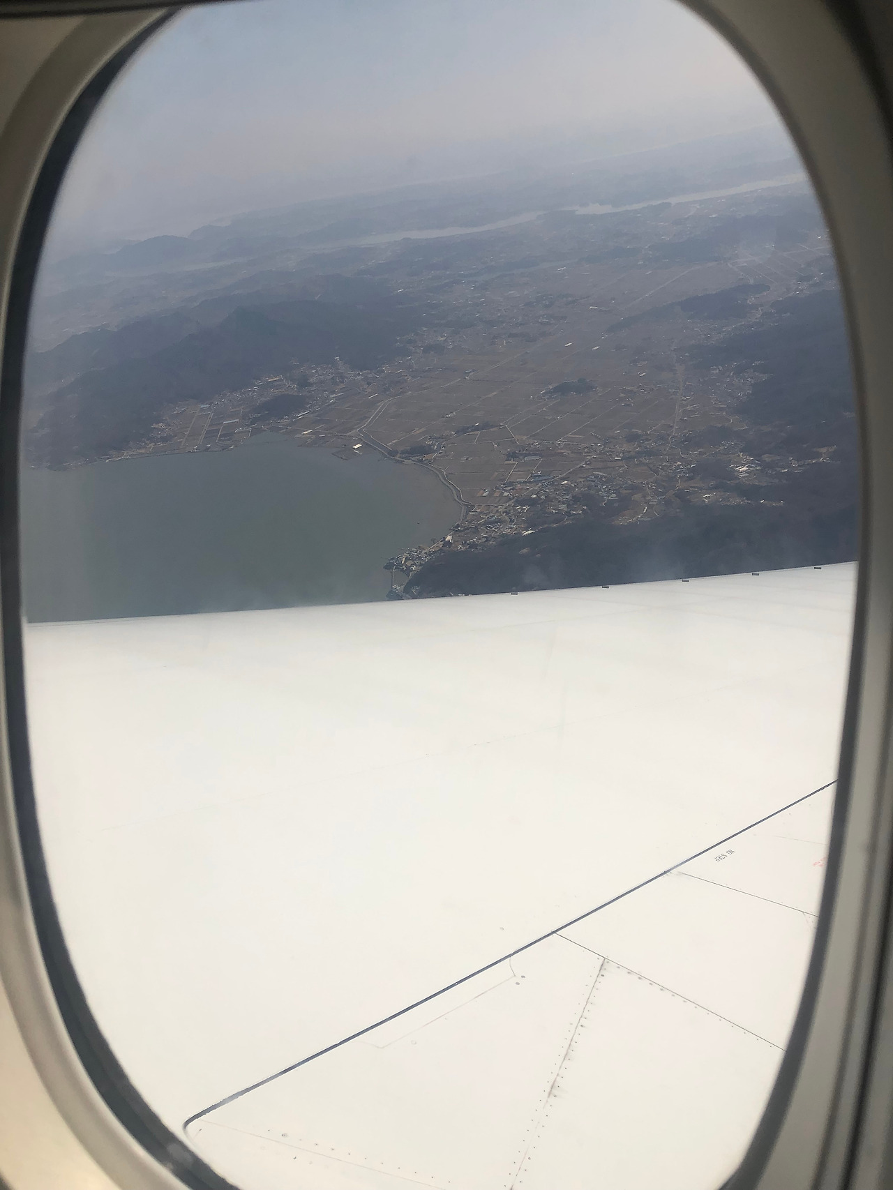 동생을 만나고 1시간 정도 기다렸다가 비행기를 탔는데, 나는 항상 비행기에서 밖을 구경하면서 가기에 이번에도 신경써서 자리를 예약했다. 나는 돈을 더 내고서라도 밖이 보이는 창가 자리를 끊는데, 아래와 함께 날개가 보이는 앞뒤 자리를 좋아한다. 공항에서의 날씨가 아주 좋아서 밖을 구경할 생각에 기대가 한껏 올라왔는데, 이게 웬걸, 자리에서 밖을 내다보니 날개 바로 위다. 창 바로 아래에 거대한 비행기 날개가 있어 거진 절반정도의 창 풍경이 가려져 있다.