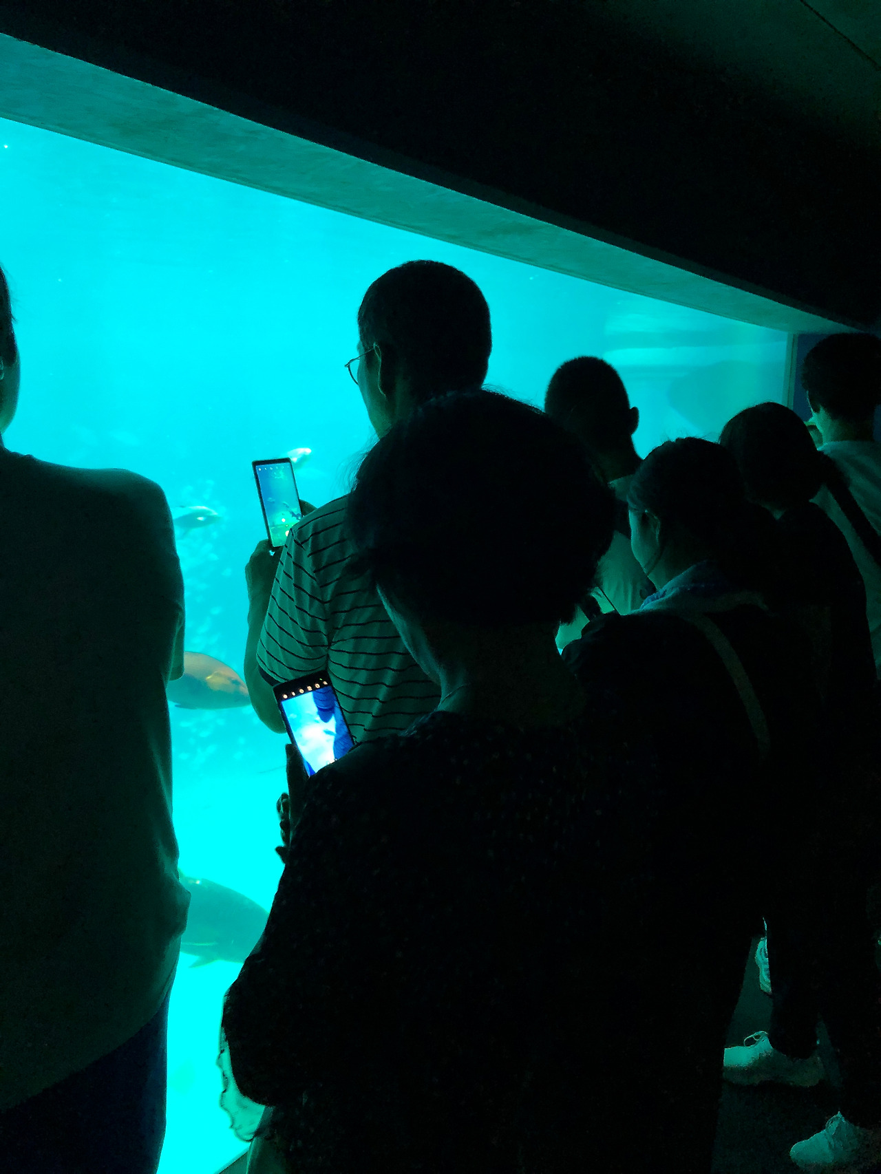 아주 이른 아침은 아니어서 조금 늦게 입장하니, 그래도 안쪽에는 사람들로 가득 들어차 있었다. 사람들이 좋아할 만한 수족관 앞에는 온갖 국적의 사람들이 두텁게 쌓여서 구경하기 위해서는 생각보다 시간이 오래 걸렸다. 아빠는 수족관 옆의 해양생물 설명을 번역기로 돌려보면서 관람하고 다니셨는데, 생각보다 기계 번역이 깔끔하게 잘 되어 놀랐다.