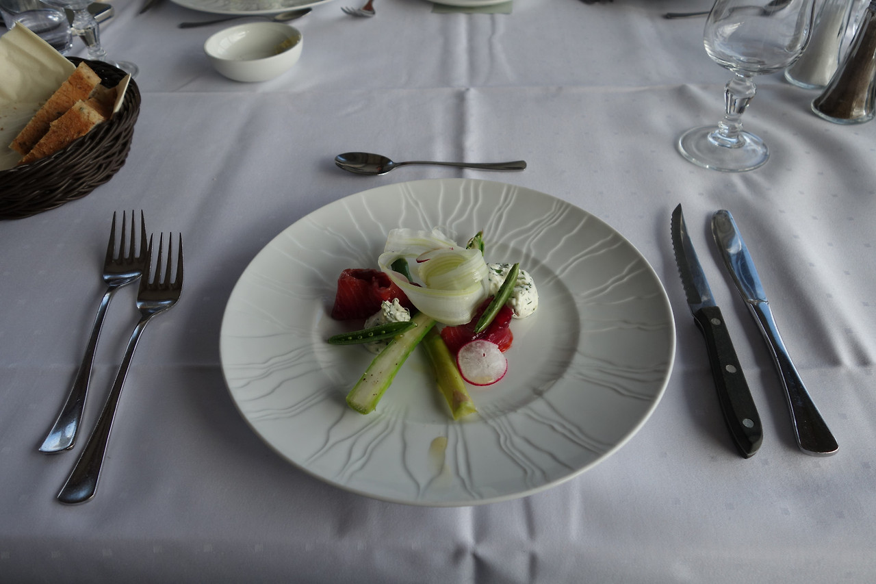 핀세1222 의 백미는 저녁 식사 시간이다. 예약할 때 3 코스 요리인 것은 알고 있었지만 먹어 보니 생각보다 훨씬 고풍스럽다. 미리 말해둔 저녁 시간에 가면 전채 본식 후식으로 나누어진 3가지 코스요리를 제공해 준다. 공들여 준비한 듯한 음식과 내부 인테리어가 곁들여져서 정말 만족스러운 경험이었다.