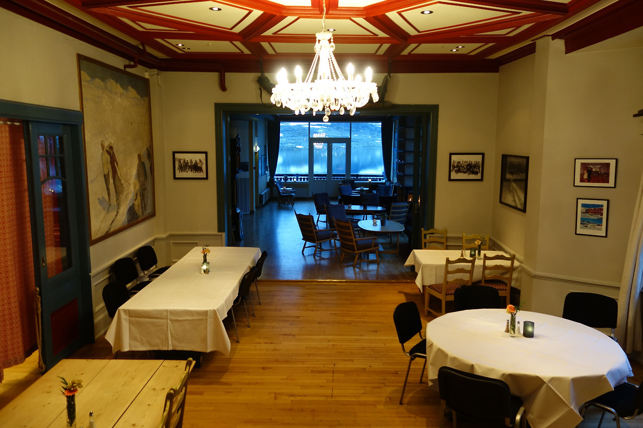 옛날 유명 스타워즈 영화를 찍은 곳이 핀세였고 그때 스텝들이 머무른 곳이 이곳이라 한다. 내부는 고풍스러운 장식들이 색다른 느낌을 준다. 공용공간에 앉으면 저 멀리 빙하도 보인다. 운이 좋다면 통유리 창 밖으로, 무리지어 움직이는 새들도 볼 수 있다. 큰 새 한 마리와 작은 새 여러 마리가 짧은 다리로 바삐 움직이며 땅을 쫀다. 빨리 사진을 찍기 위해 카메라를 빼들지만 이미 사라져 버린지 오래다.