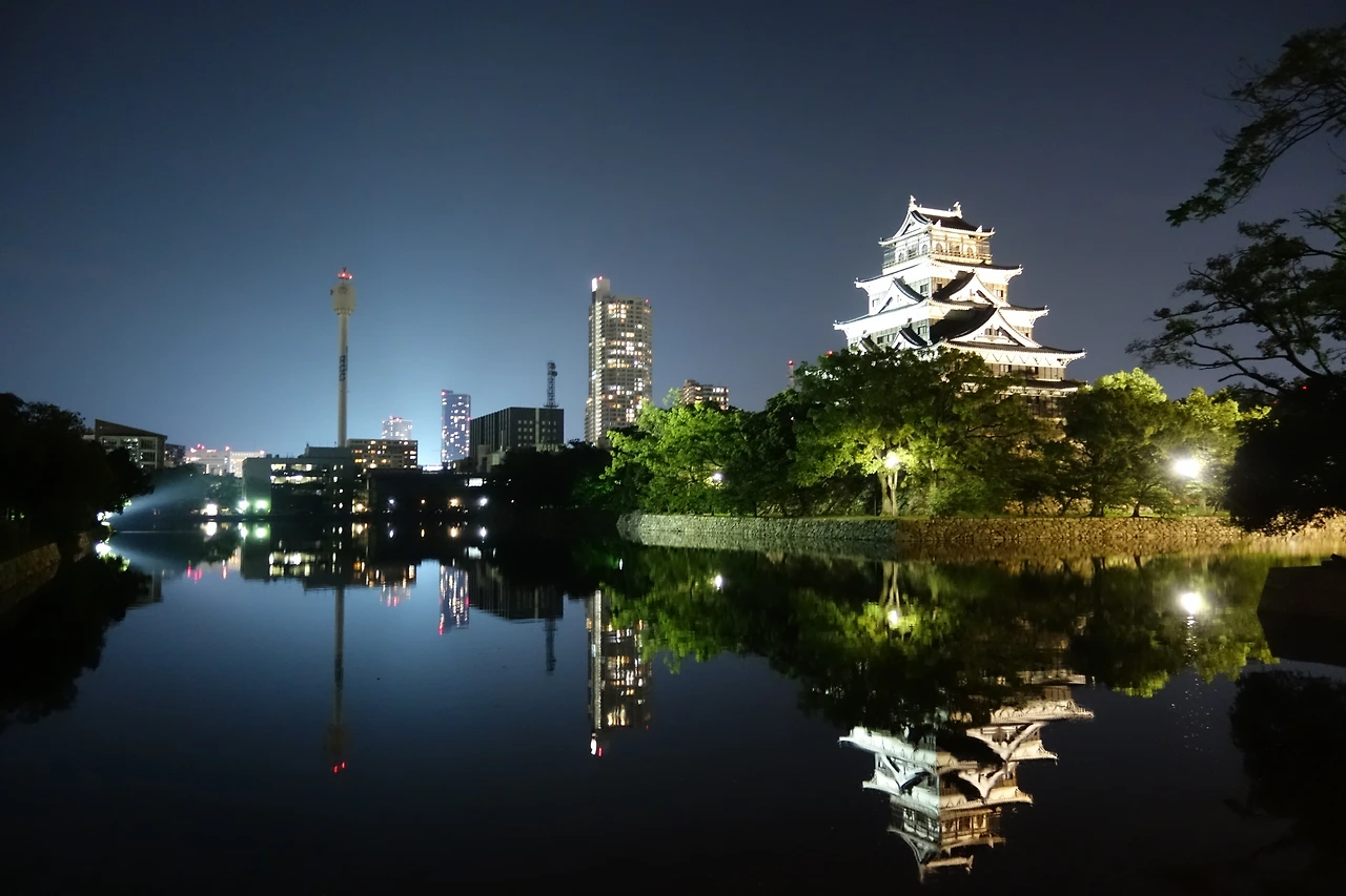 번화가를 걸어다니며 건물 사이를 누비다가 보니 바로 앞에 히로시마 성이 나타났다. 히로시마 성 주위의 호수를 따라 걷는데, 날벌레 걱정을 많이 했지만 생각보다 벌레가 없어서 아주 쾌적했다. 성 주위를 보다가 사진 찍기 좋은 장소가 나와 성의 사진을 찍어 보았다.
