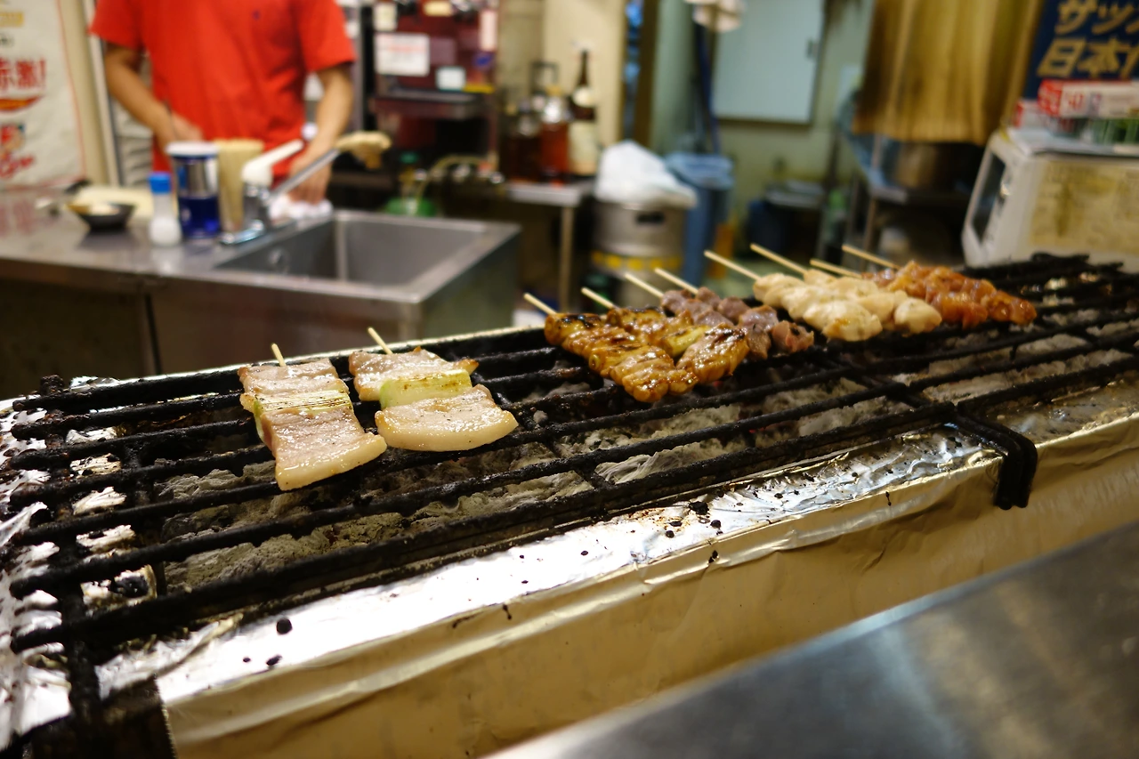 사람이 많지 않은 가게에서 바로 구워 나오는 꼬치를 먹었다. 소 혀를 먹어보고 싶었지만 없어서 어쩔 수 없이 먹고 싶었던 꼬치구이를 모두 먹어 보았다. 그리고 나는 생각보다 돈을 많이 써서 카메라를 놓고 근처 편의점에 가서 돈을 뽑아 와 지불을 했다.