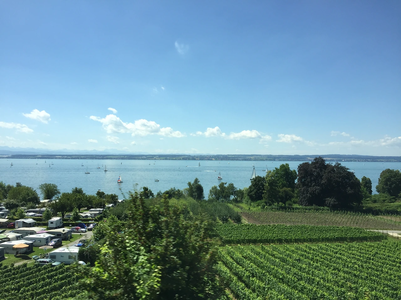 버스가 지나가는 큰 호수는 독일과 스위스, 오스트리아와 닿아 있는 보덴 호수인데, 호수 주위로 포도농장이 펼쳐져 있는 예쁜 풍경을 지나가기도 한다. 엄마가 버스 안에서 잠깐 자는 사이 아빠가 버스 안에서 잠을 자지 말고 열심히 주위를 구경해야 한다고 말했다. 하지만 피곤하면 속절없이 잠들 수밖에 없는 것 같다.