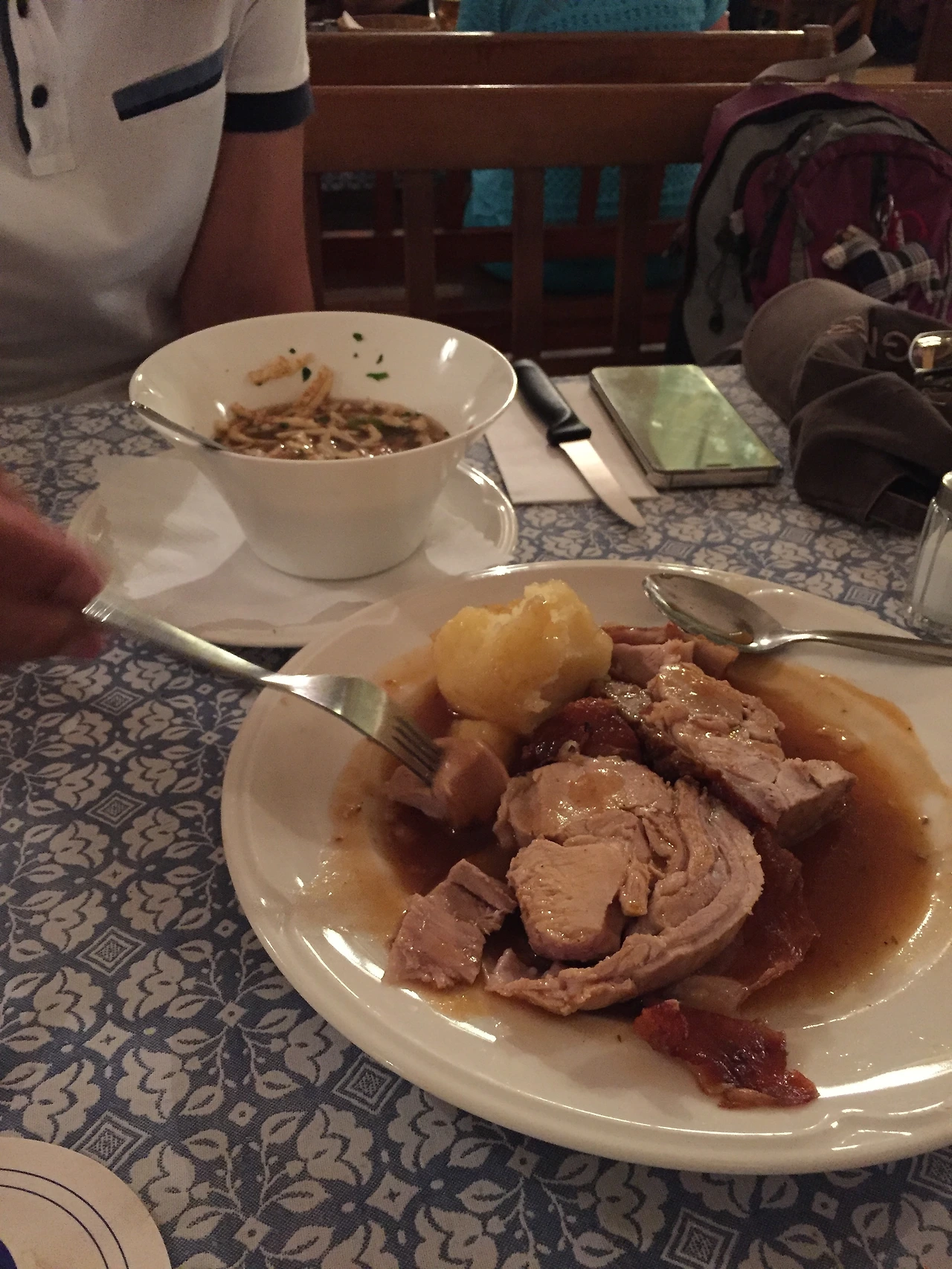 악단 바로 앞쪽에 앉아서 음악을 들으며 부모님과 이야기 하고 음식을 먹었는데, 사실 나는 악단 음악을 들으면서 음식을 먹는 것이 처음 경험해 보는 것이었다. 활력 있는 그 특유의 분위기는 한국의 북적이는 시장에서 음식 먹는 것과 비슷해서, 나중에 뮌헨에 또 간다면 꼭 다시 가보고픈 곳이다.