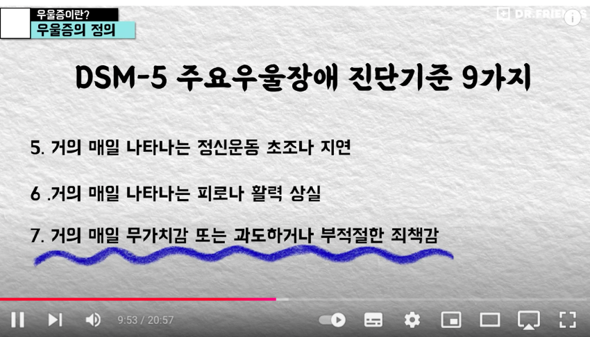 이에 대해 잘 풀어 설명한 유튜브 콘텐츠는 <닥터프렌즈>의 '자기가 우울증인지 알아보는 방법'이다.