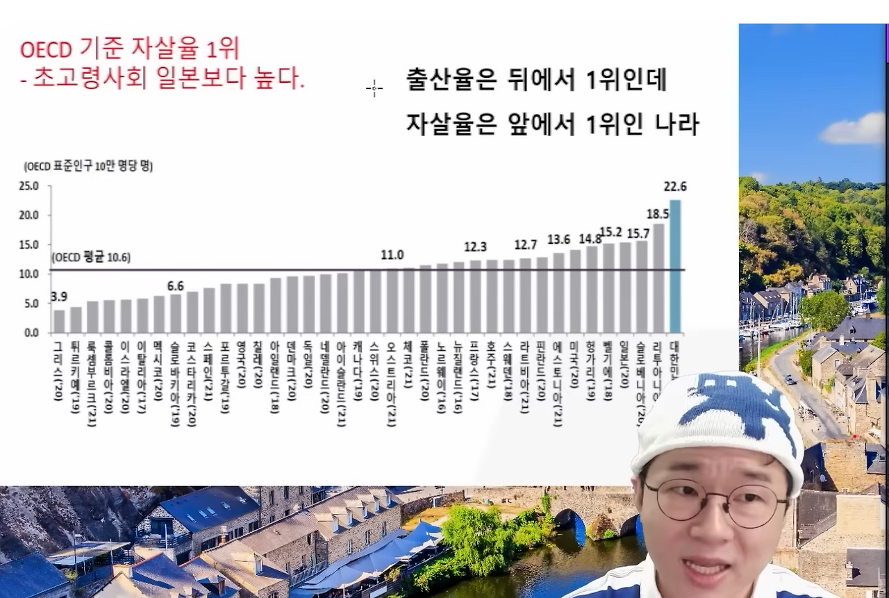 <슈카월드>에선 한국 자살과 우울증 현상 진단에 대한 콘텐츠를 몇 번 올렸는데, 한국 현주소를 잘 알려줄 수 있는 콘텐츠는 '출산율은 꼴찌, 자살률은 1위'이다.