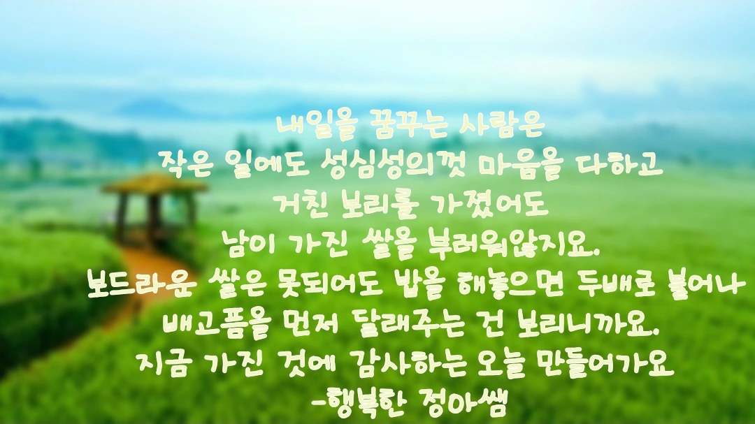 어젯밤 날이 너무 덥길래 소파에서 잠들었다가살강에 얹어놓은 삶은 보리쌀을 몰래 꺼내먹다가할머니께 혼꾸녕나는 꿈을 꾸었어요아마 여섯살 무렵이었던듯요제가 태어난 곳은 칠천도라는 섬이어서일곱살까지는보리에 쌀을 얹어 먹었던거 같아요ㅋ군것질거리가 없어서꼭꼭 씹어 먹으면입안에서 돌아다니다톡 톡 터지는 보리쌀 삶은 걸 한 줌 꺼내 먹곤했거든요 ㅎㅎ(가난 아님 주의 ㅎ 논의 면적이 밭보다 적어서요)