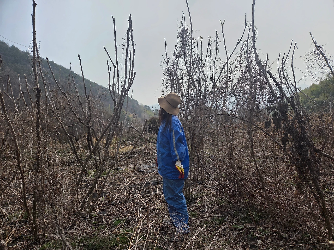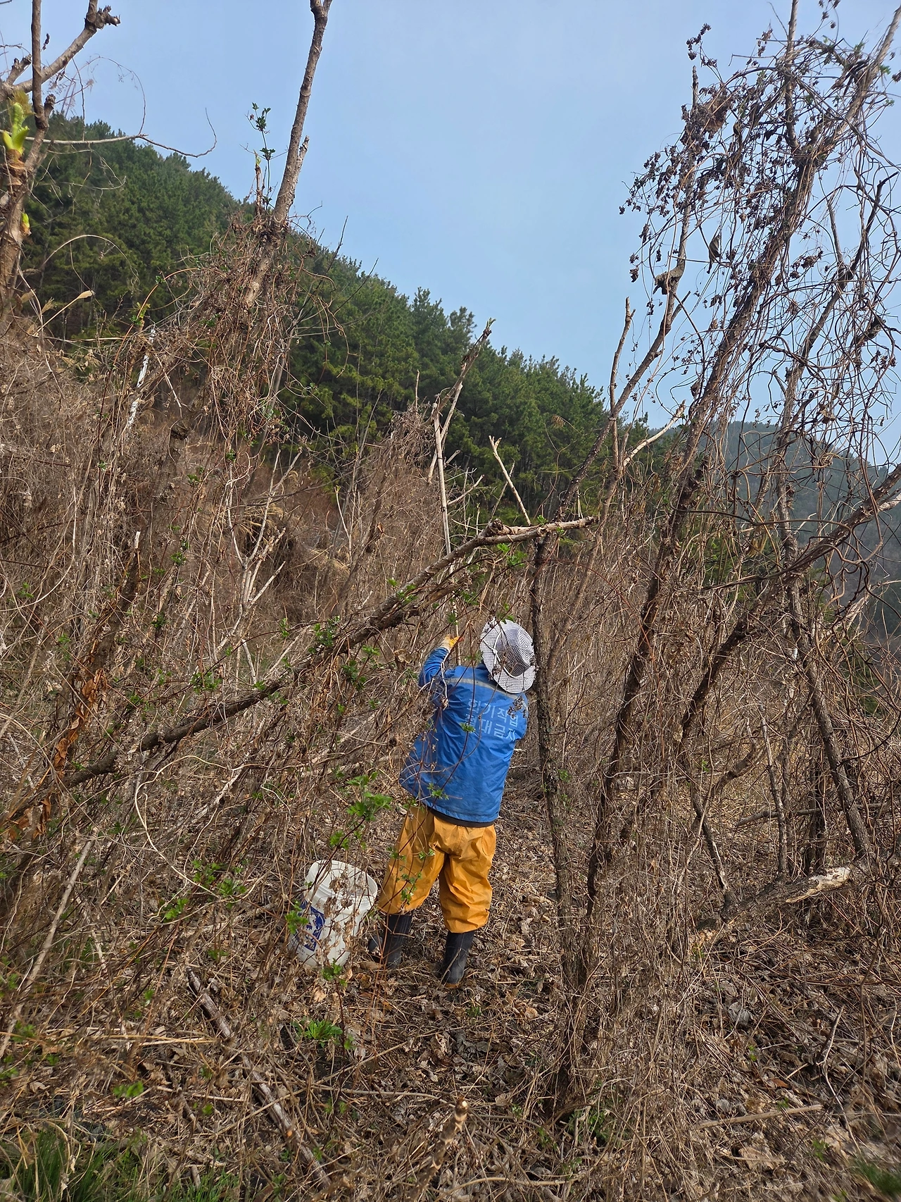 화단에 덮어줄 갈비(소나무 낙엽)도 다섯 자루
