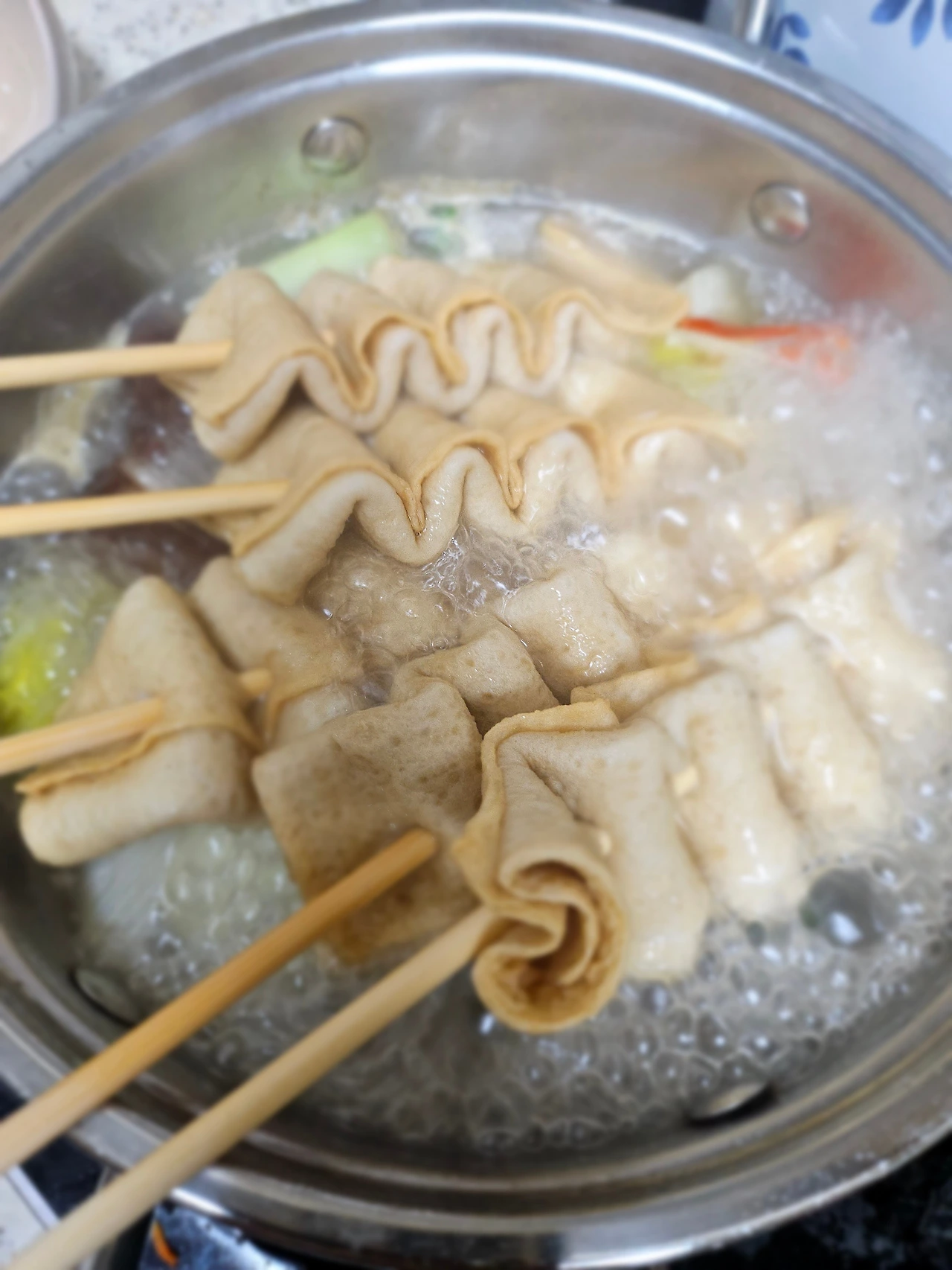 6. 국그릇에 각자 먹을 만큼 국물을 덜어서 담아내고 그 위에 꼬치어묵을 올려냅니다.