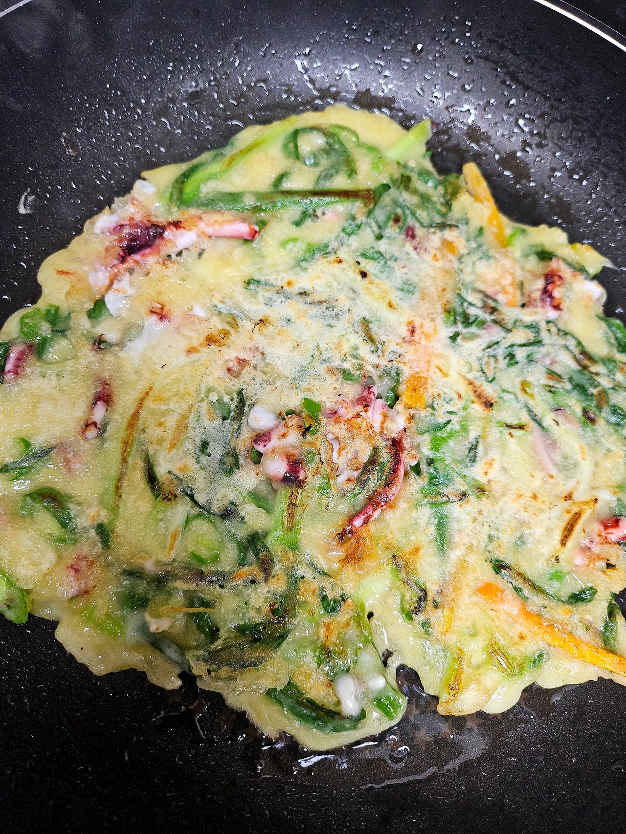 오른쪽 후라이팬에서는 낙지볶음이 진행되고 있어요 왼쪽에선 파전이 익어가겠쥬?