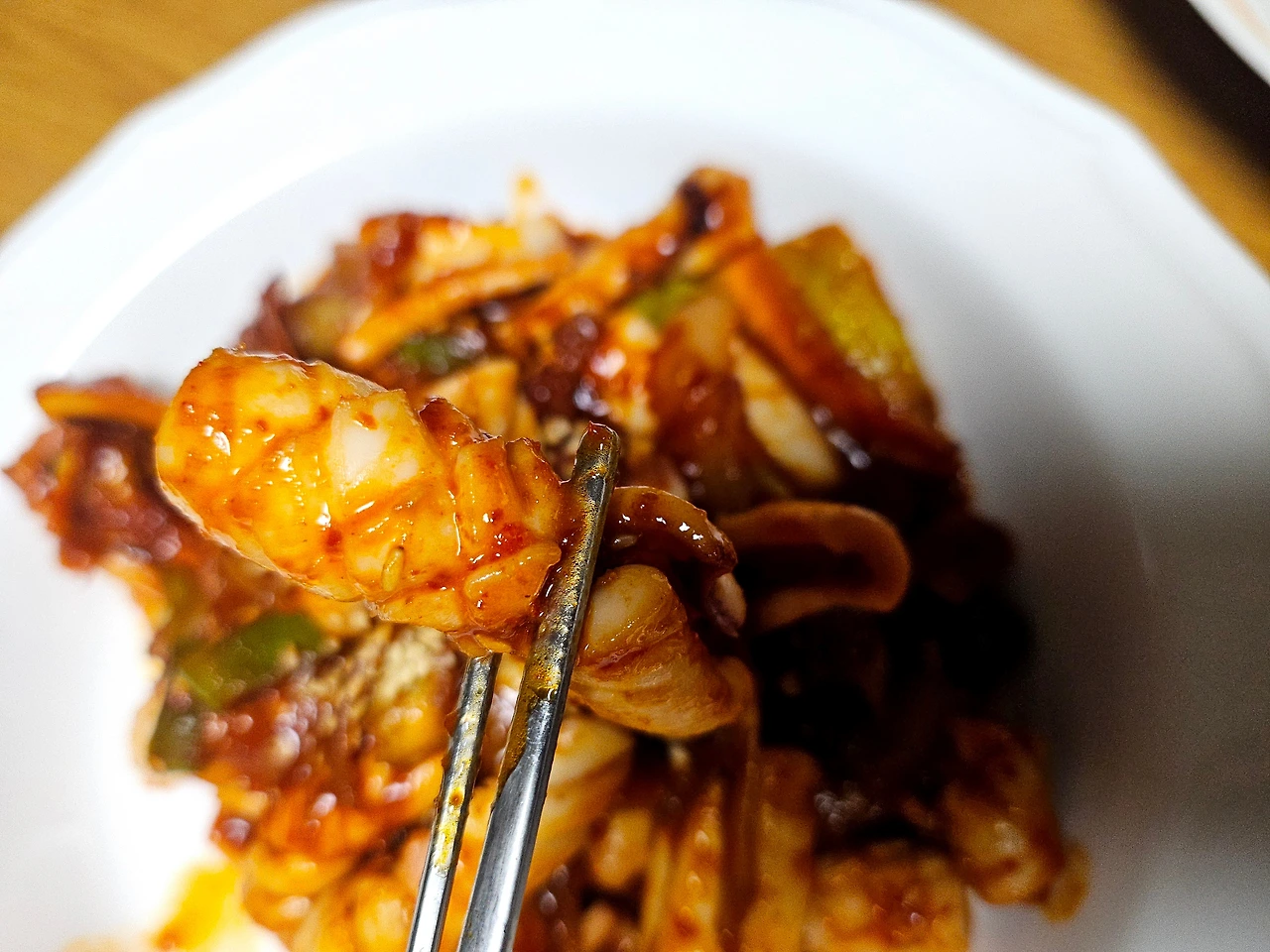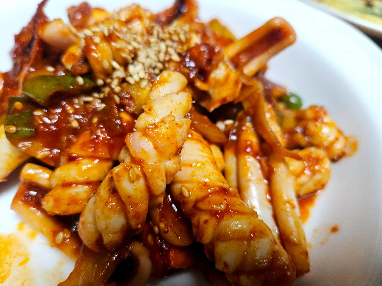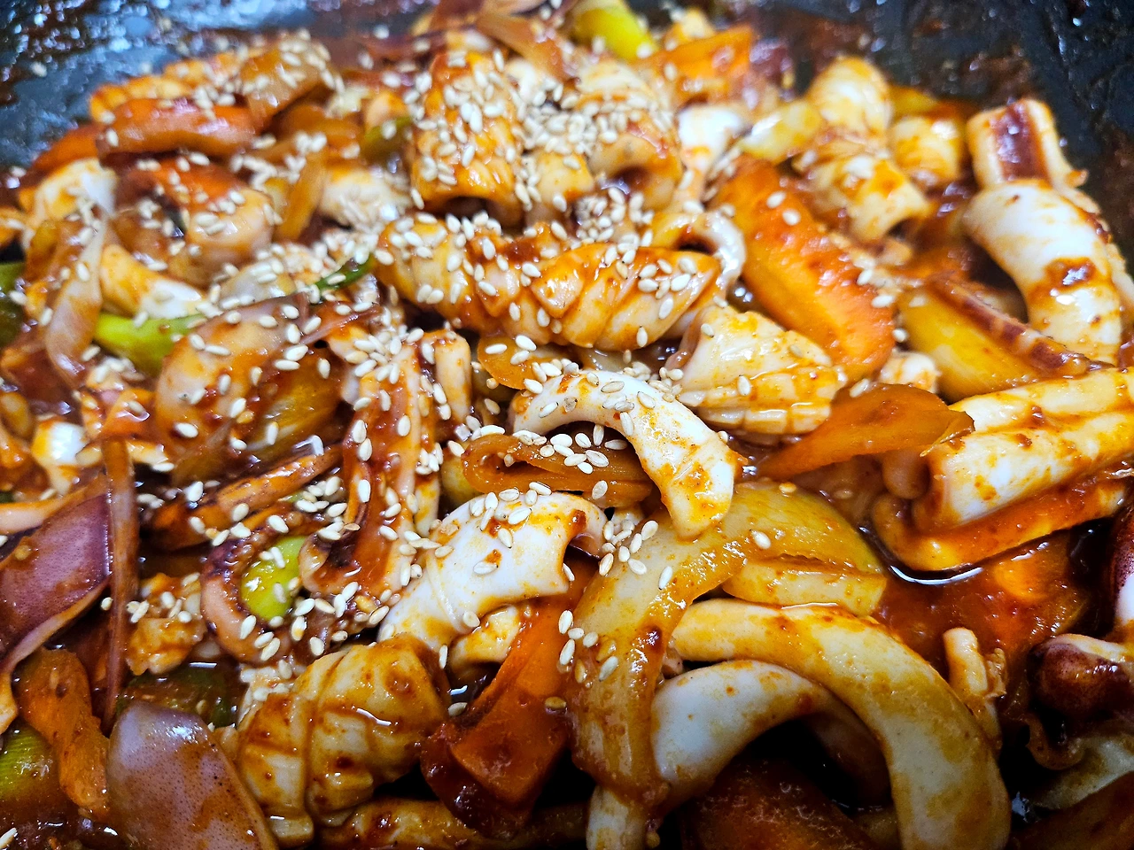 오징어넣어서 5분만 센불에 볶아줍니다. 너무 오래 볶으면 오징어 식감이 질겨지는거 아시쥬?